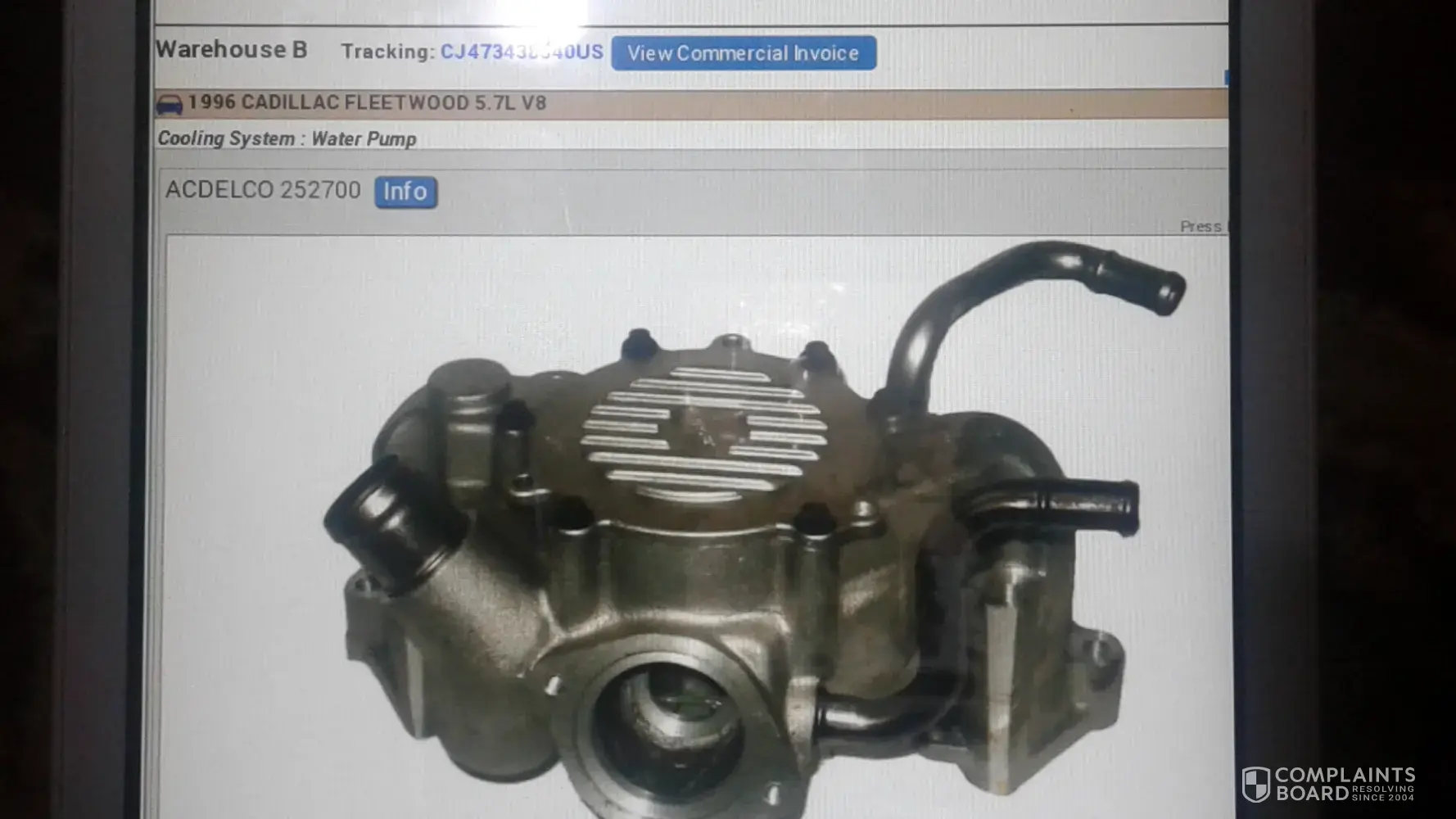 Welcome to spend a complaint about the delay of the required part is the cooling system, the water pump, and it bears the part number from AC DELCO 252700 #[protected] and the order number is [protected] and he had another request, which is the gasket with the water pump attachment. Water and this is Emily [protected]@gmail.com And thank you very much
