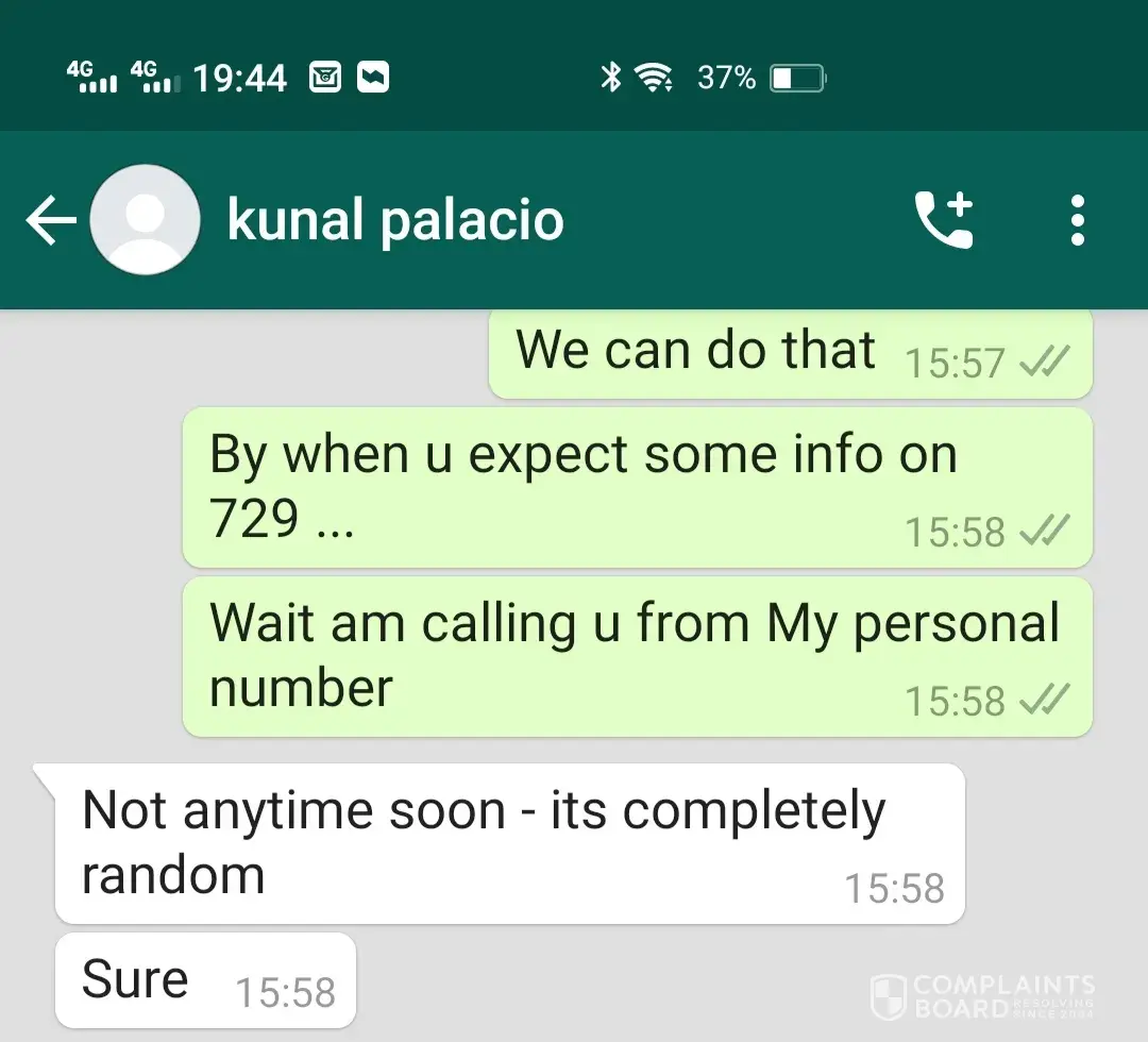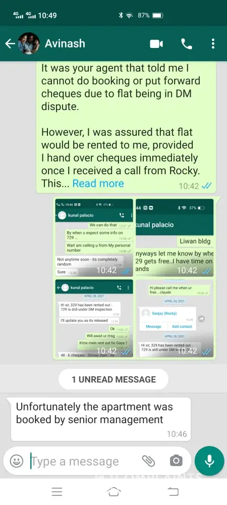 Thereafter I messaged the GM Mr. Avinash [protected]). and I got a dry reply "Unfortunately the apartment was booked by the senior Management"