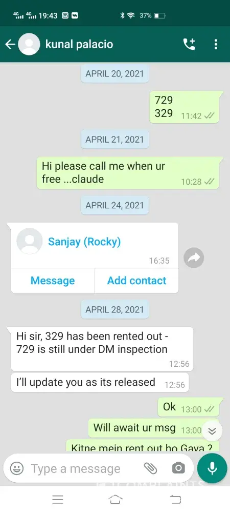 I had approached Rocky real estate to select a flat in the building Palacio (2BHK) at Silicon Oasis Dubai, Dealing with their agent Mr. Kunal [protected]) ([protected]@rockyrealestate.com). AFter inspecting all flats we decided that flat 329 or 729 was best suited for me as the others had some issue or the other and the 3bhk available at low rent was not desirable as it had no balconies and ac bills for a 3bhk would be high.