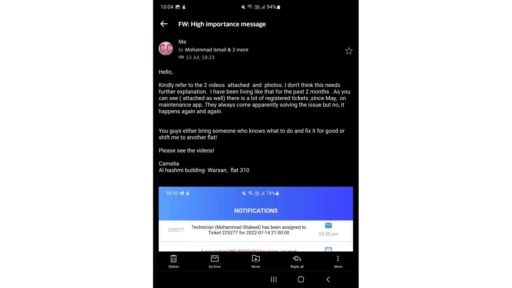 I have complaint three times and no use. The company maintenace manager his team does not care about tenants. Simply they get money from tenant and after that they dont care. I got fooled and cheated by them.