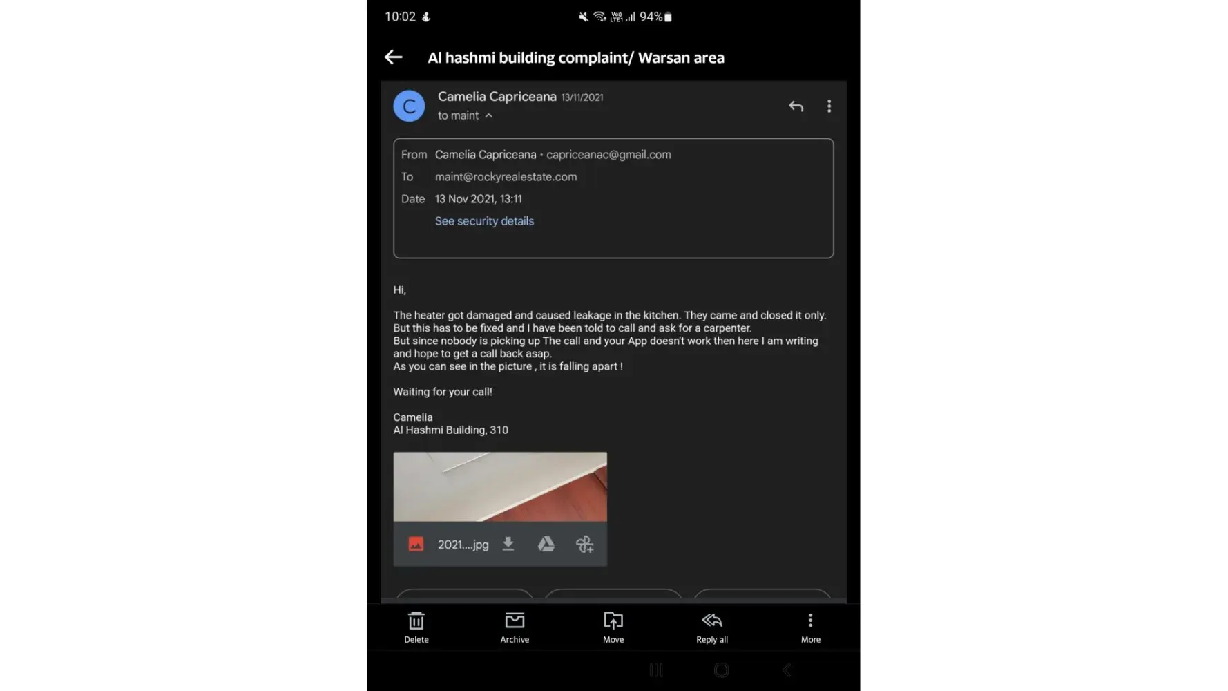 The issue actually started in November ( you can as well see attached email from november and actual date) . Aside of the email I have also registered multiple complaints on their app , rocky real estate app. I have attached examples of it as well.