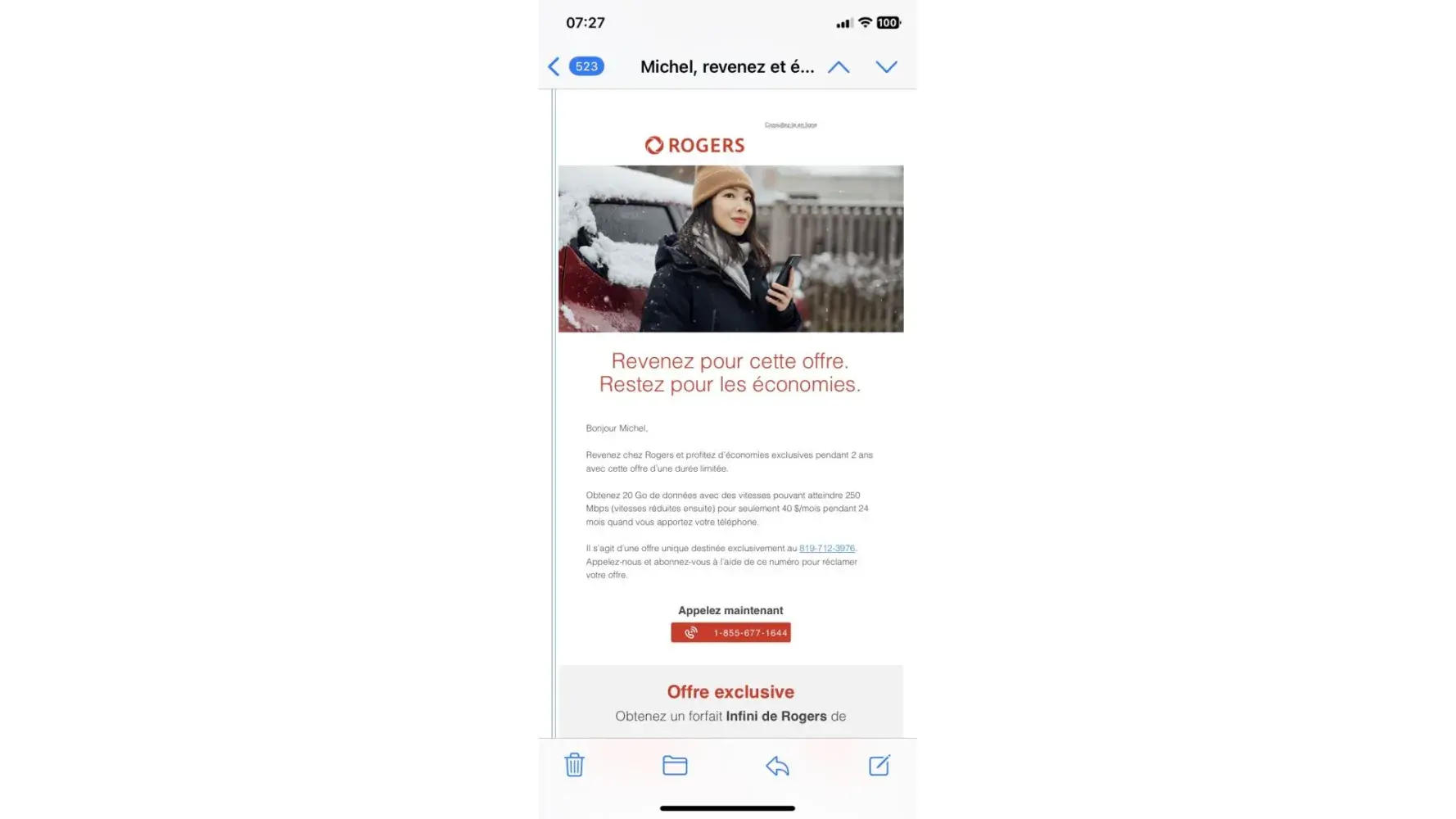 On February 9th 2023, I rec'd a promotion email from Rogers offering me a plan ($40 for 20G) if I would return as a customer. I emailed 3 times without ever getting a response so I decided to call. I spoke to a person named Patrick [protected] ext 9975) and I explained to him that I was interested in returning but that I was in Mexico until the end of March. He told me that there was no problems and that he would keep an eye on the promotion and activate the sim cards before it would expired as this was for the return of my wife and I so 2 phones.