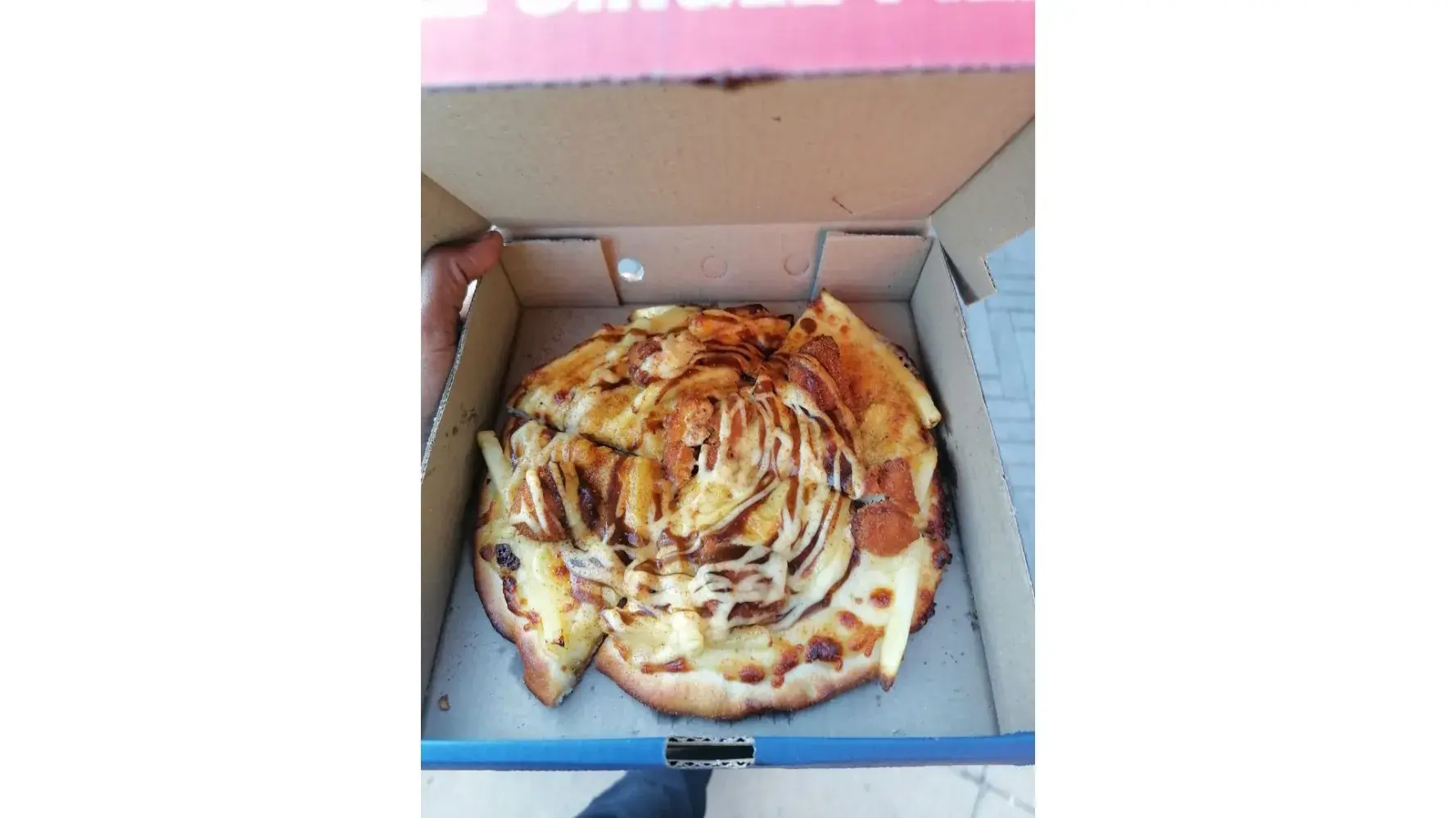 I bought a R149.90 special for supper. One sweetelious chicken and one beef sava. I came from work and just picked it up. At home I open the boxes and see that the beef sava was so burned. We can't even eat it because when it cooled it was completely dry and to hard to bite. I bought this bizza at paarl village mall. I can't even return it because it's to far from hom but near my work place. I had to throw it away