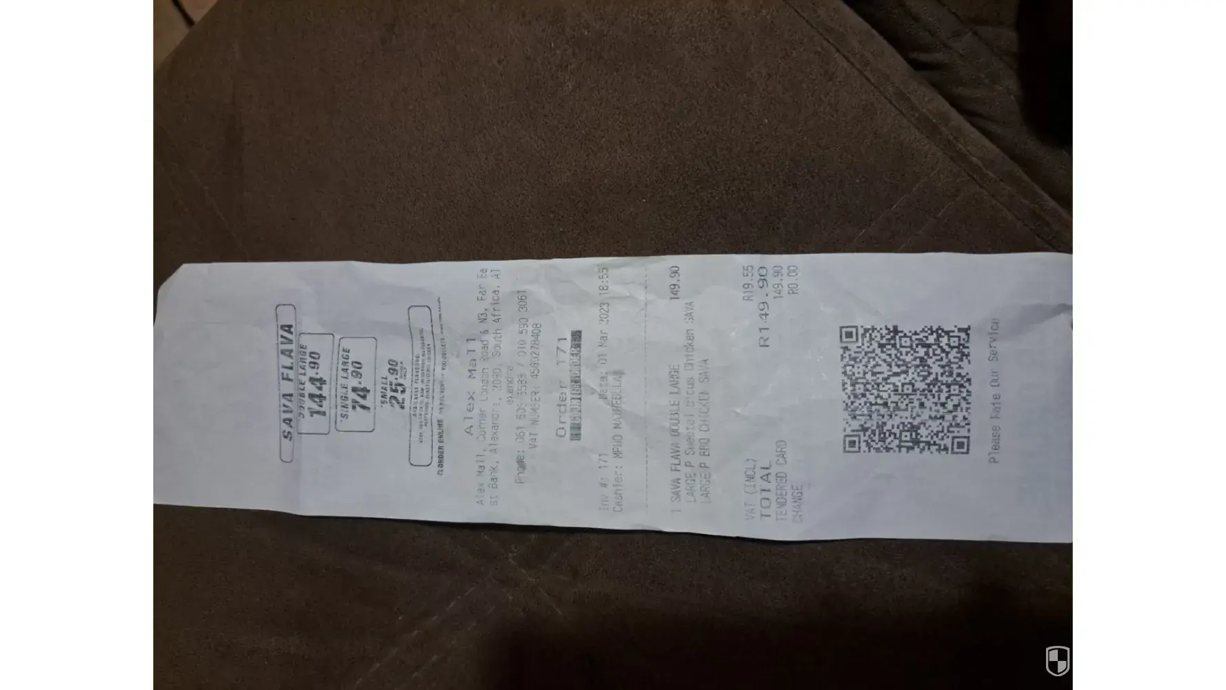 I just bought a pizza and pizza pie at pan africa mall in Alexandra.