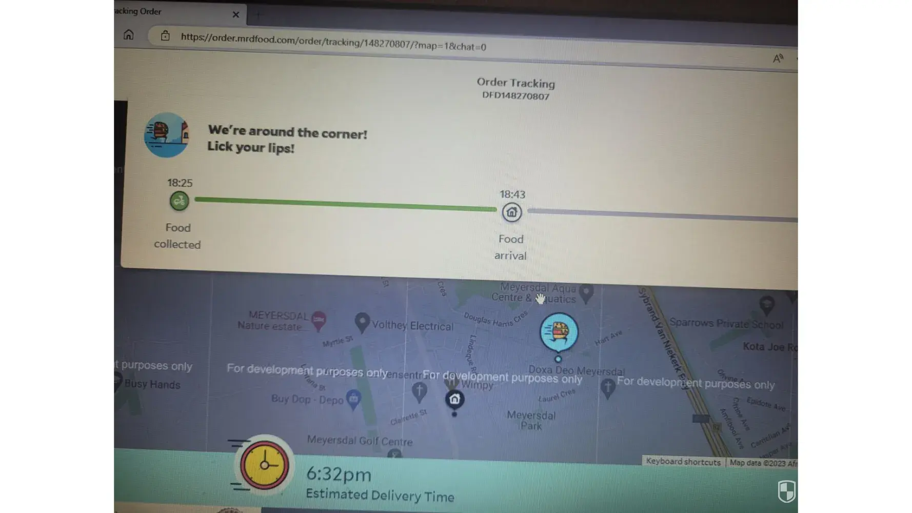 I ordered a pizza through Mr D. Est delivery time was 6.32pm.