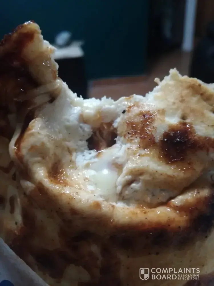 I have attached pictures of how disgusting this looked the dough was raw and not even cook the filling on the inside was coming out and just falling, it was even smashed and brought to us.