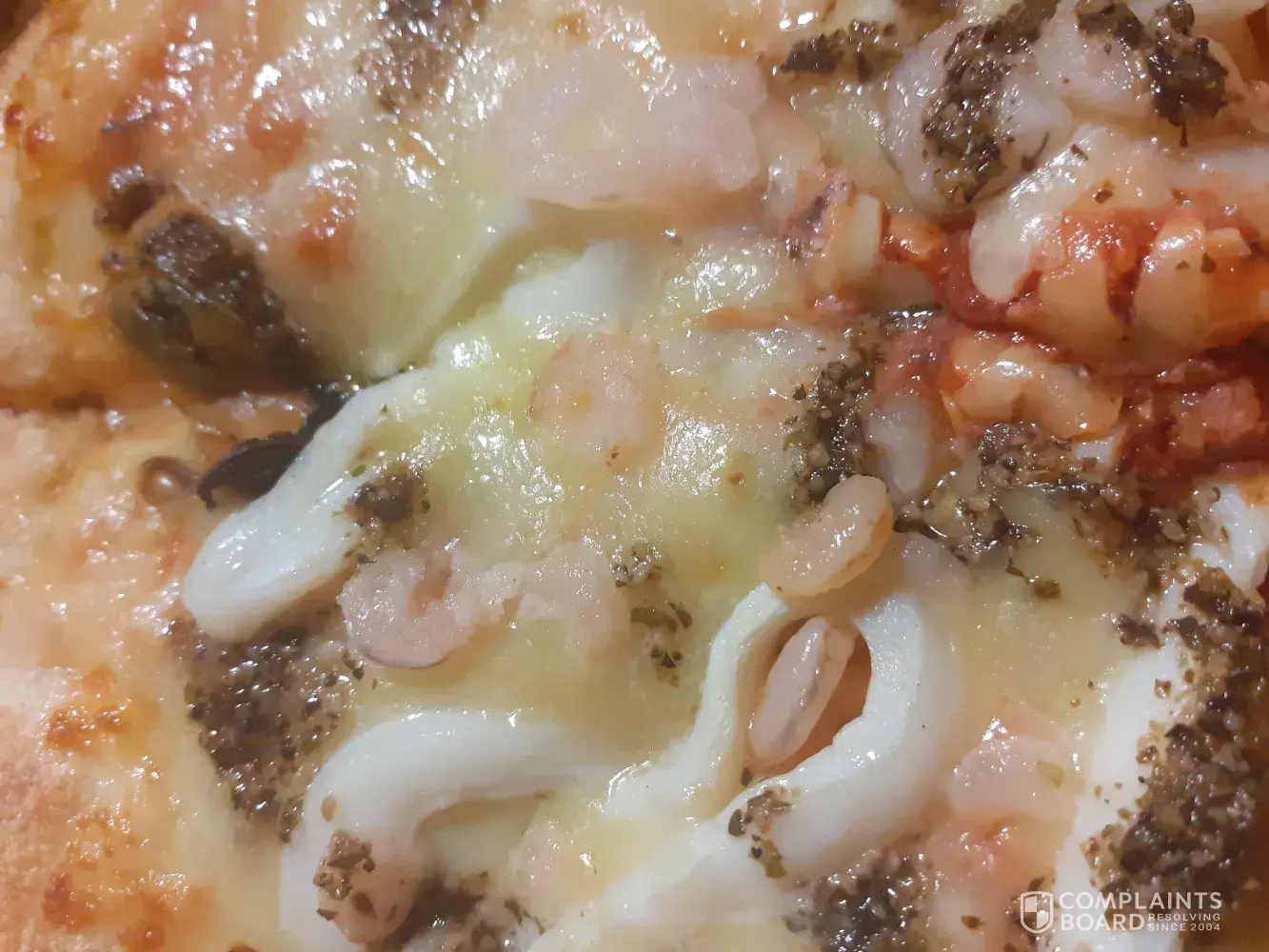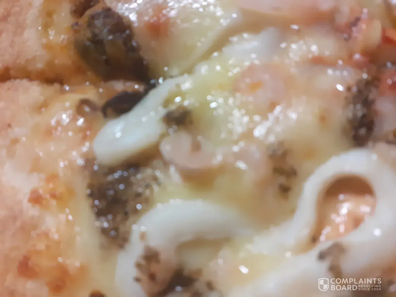 The issue was the shrimp on the seafood pizza was uncooked and also still had the dirt and feceas (poo) line in the shrimp.