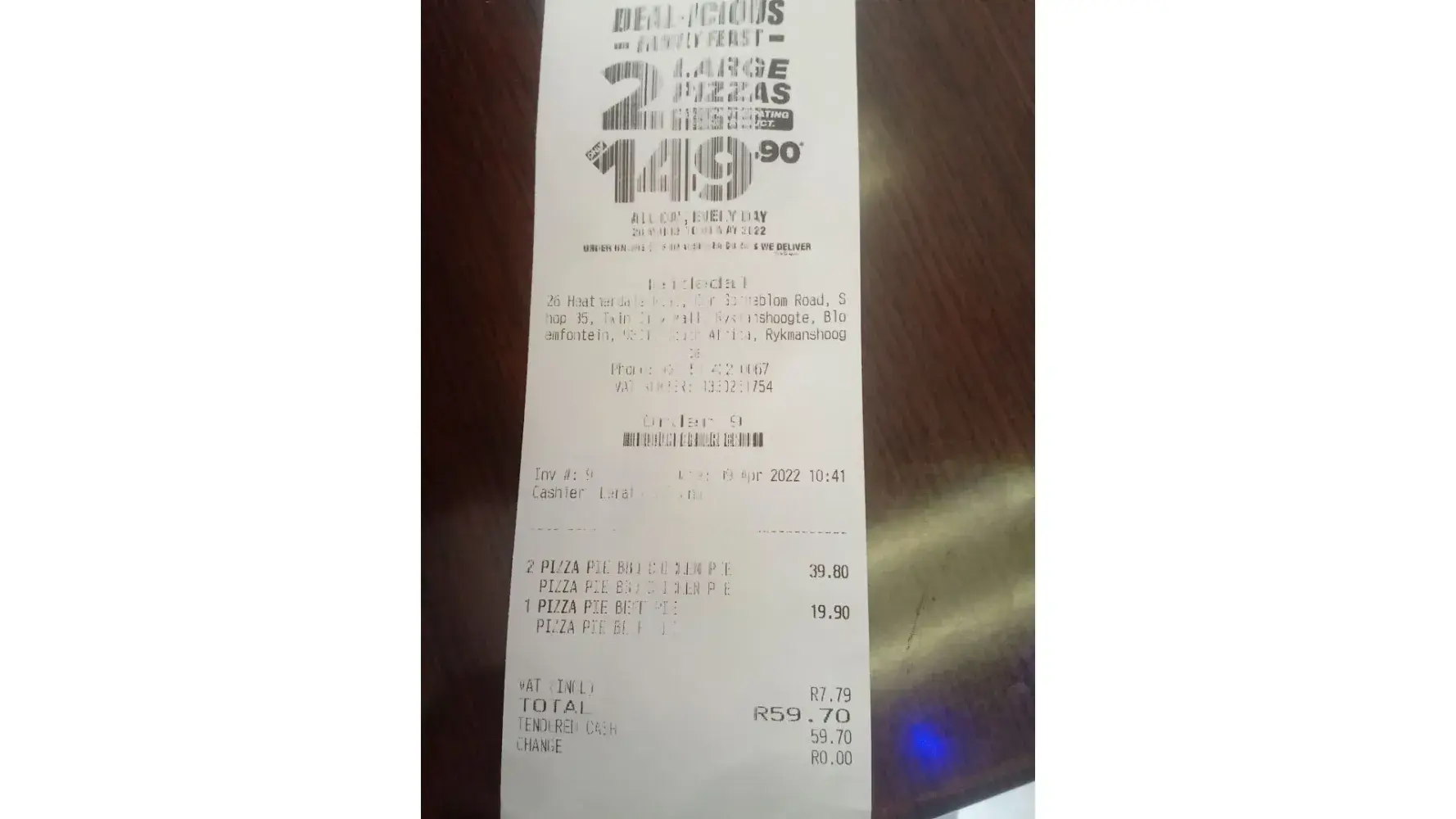 Romans pizza Empangeni. Order number 117. 8th April 2022