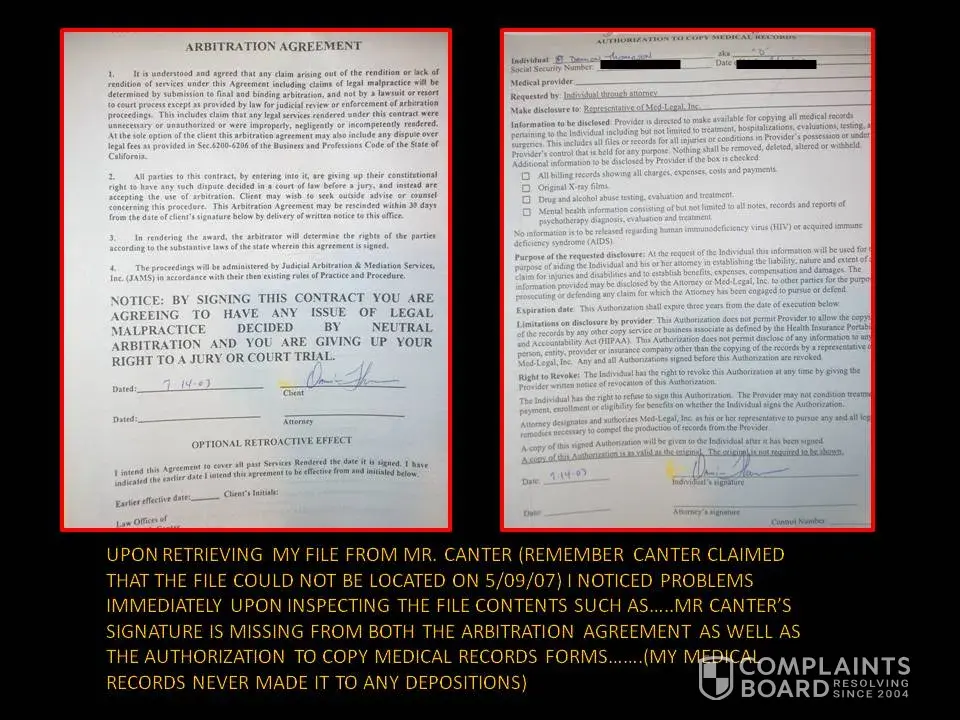 Mr. Canter insists that he represented me in a competent manner. Take a look at the documents below. Would you feel this is competency?