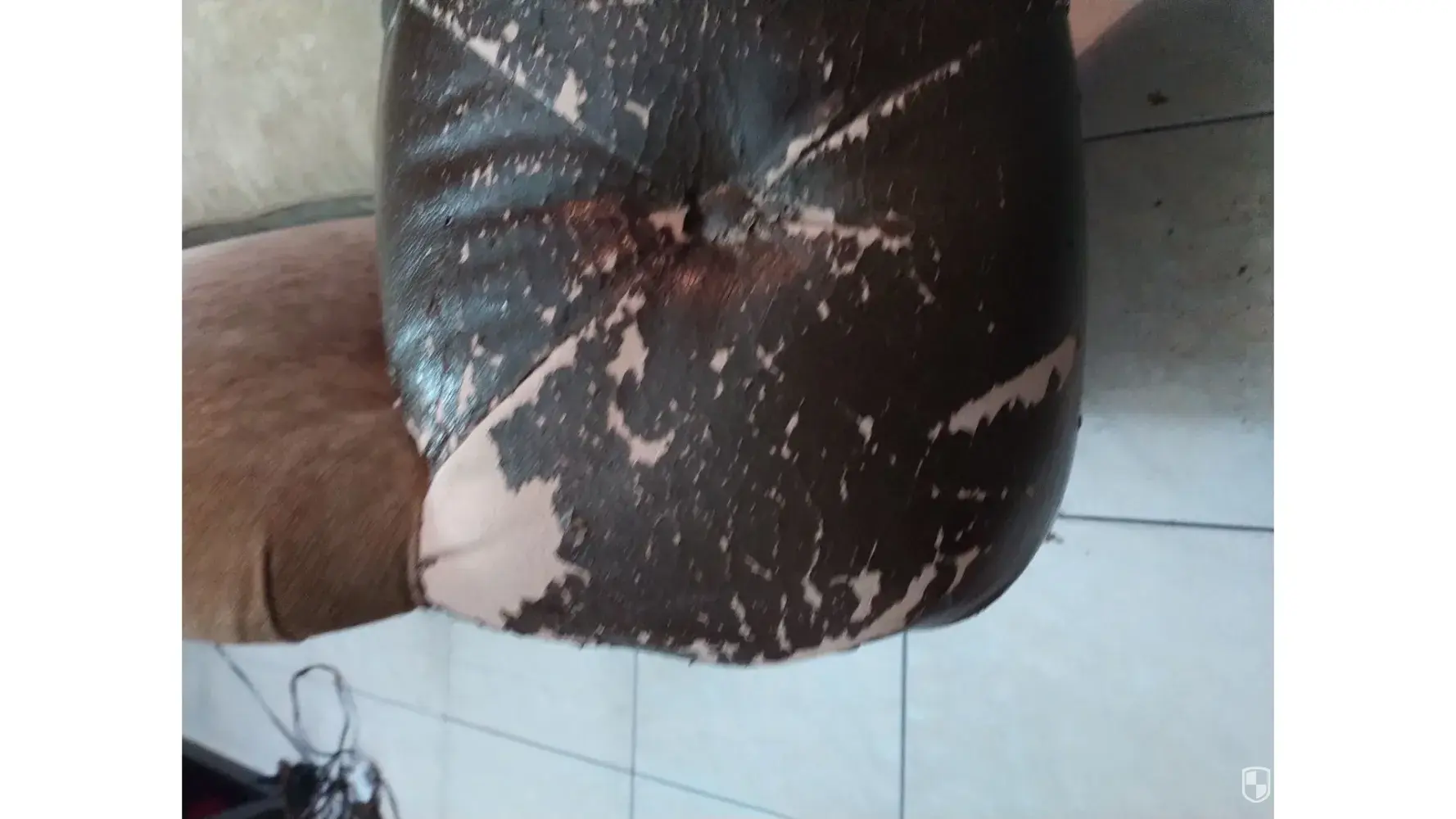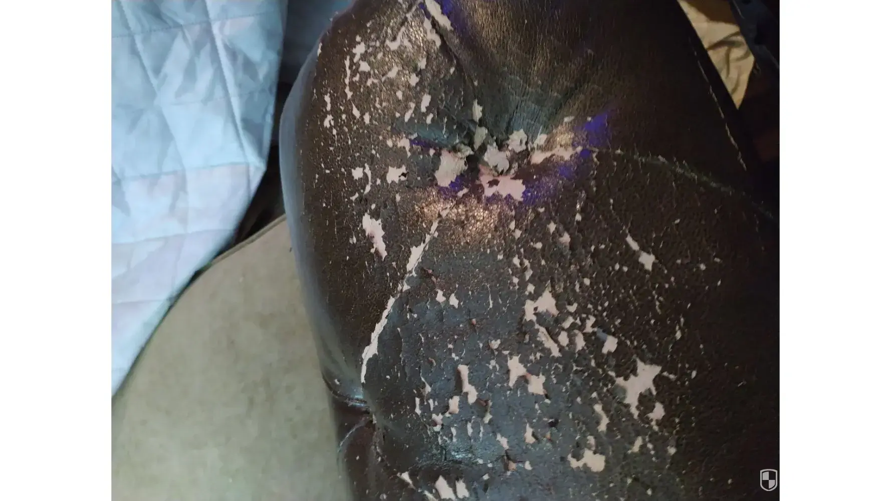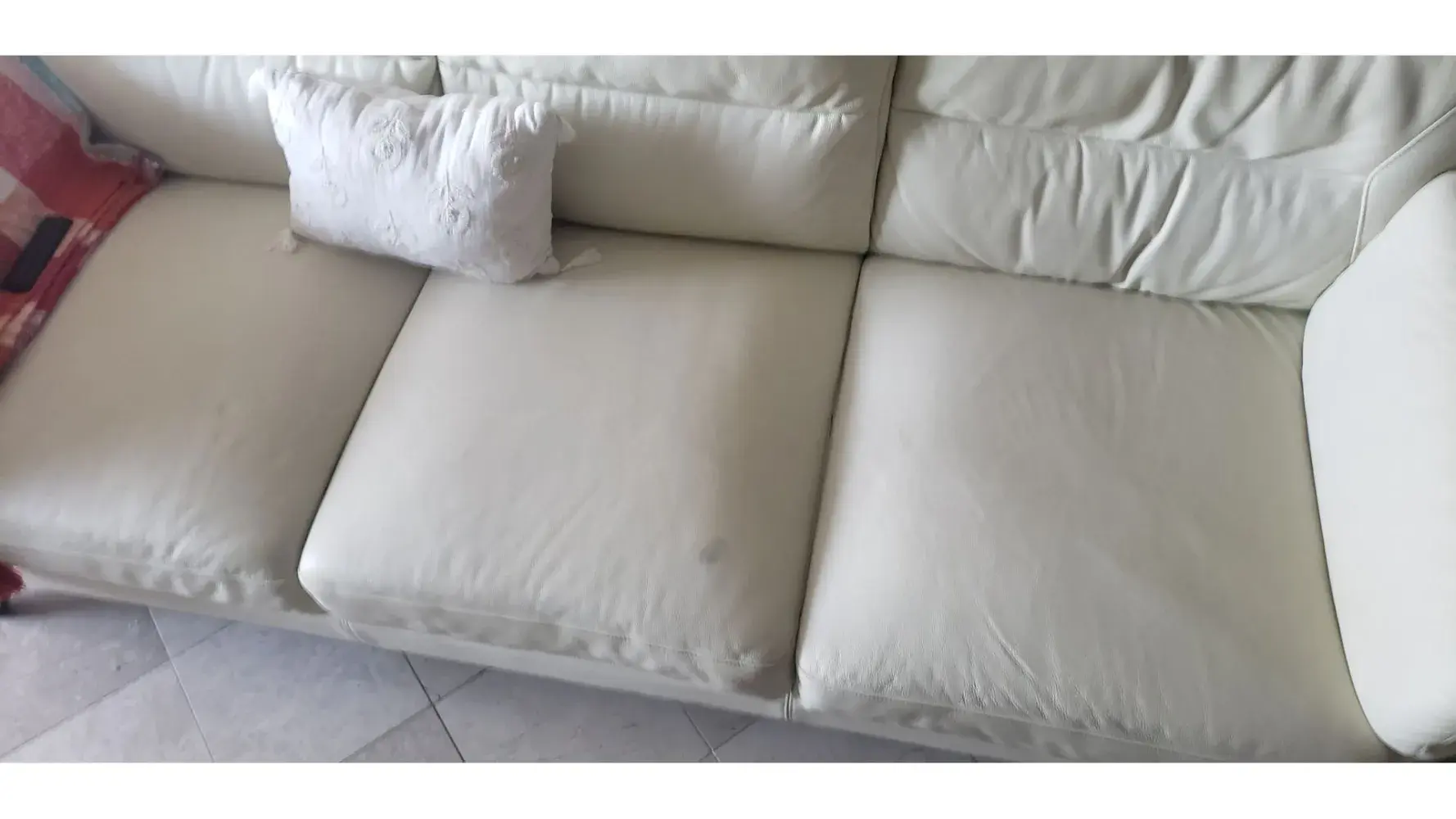 Small peeling on leather cushion is not covered.