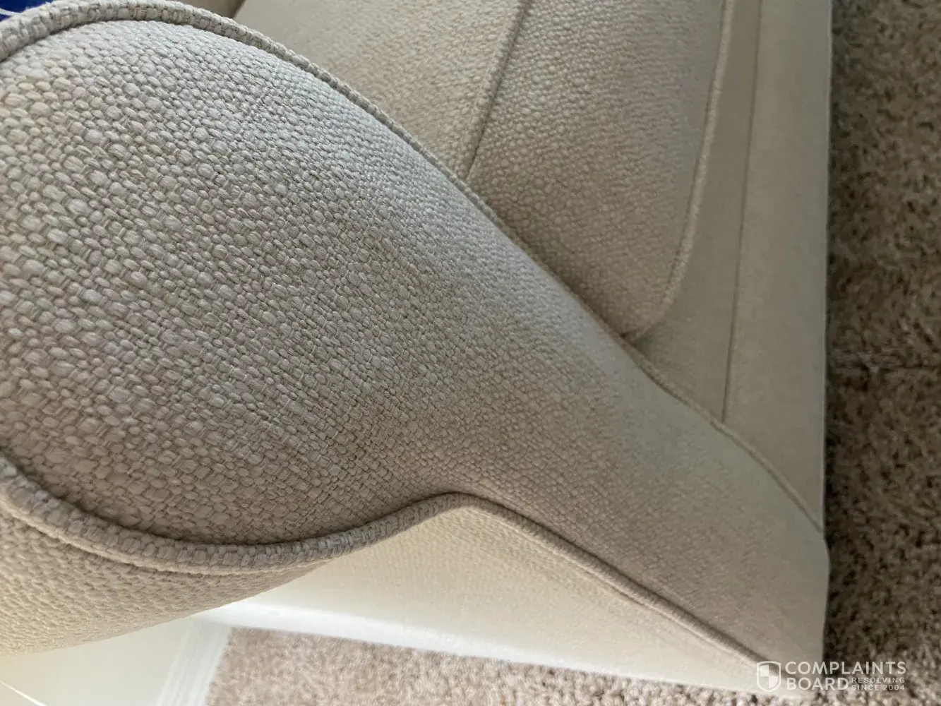Terrible construction. They sent two reps out told me puckering of a very large seam would go away with wear! Padding bunched up on arms and a side seam open. Techs took pics. Said corporate office would call in two days. No one ever called. Resolve this issue! This is totally unacceptable and I am sharing my nightmare with everyone I speak to. This will be the last piece of furniture I ever buy at rooms to go and prepared to take legal action if necessary. R Vandevander