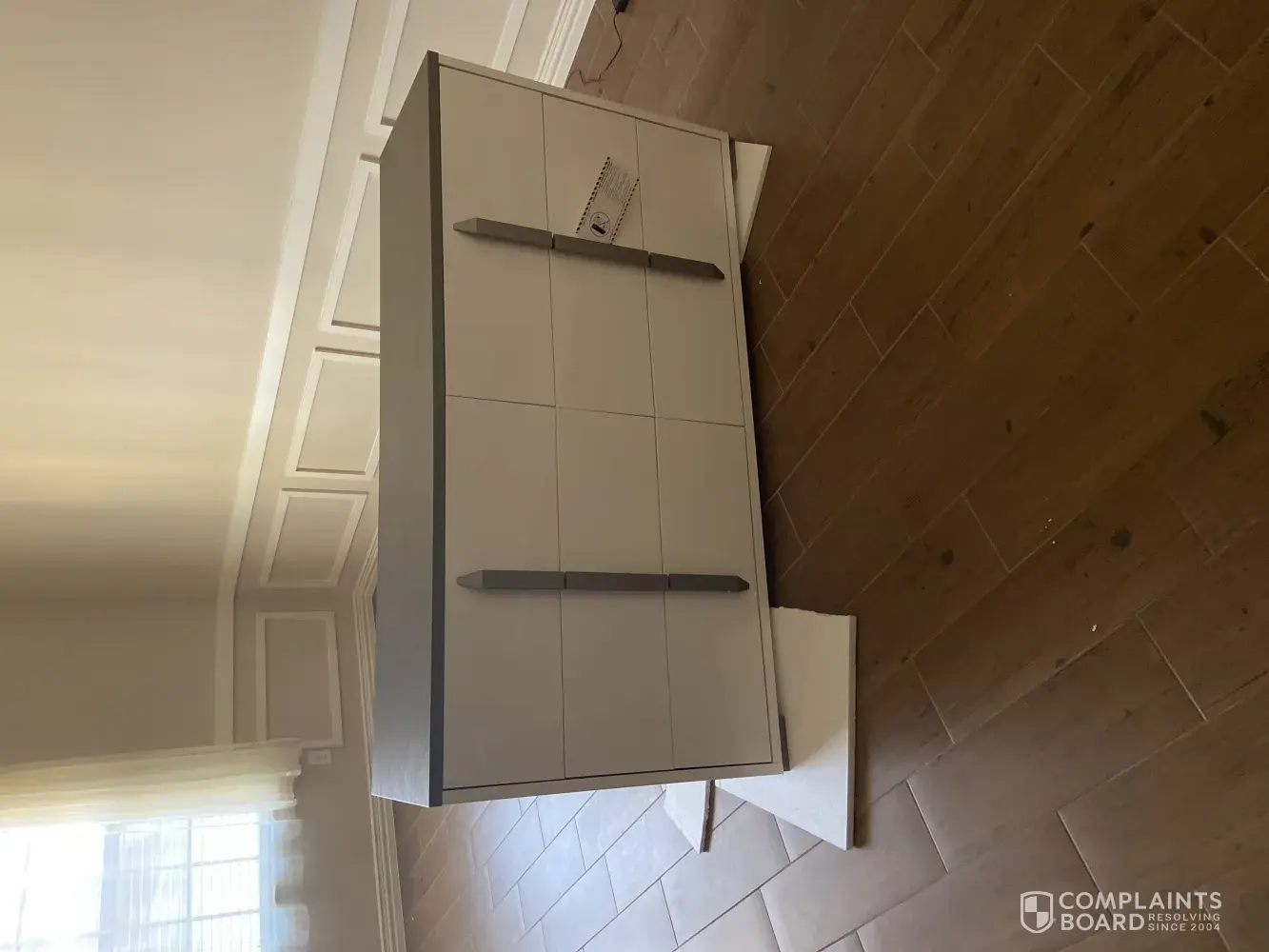 Unlike the first delivery the guys opened the boxes, unwrapped the seperate pieces and assembled them in the house. I instantly thought this looks to be refurbished. And sure enough after inspecting before they leave we discovered the defect.