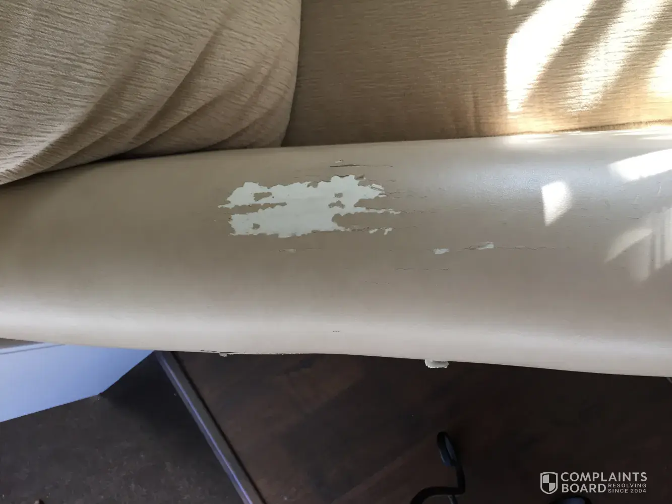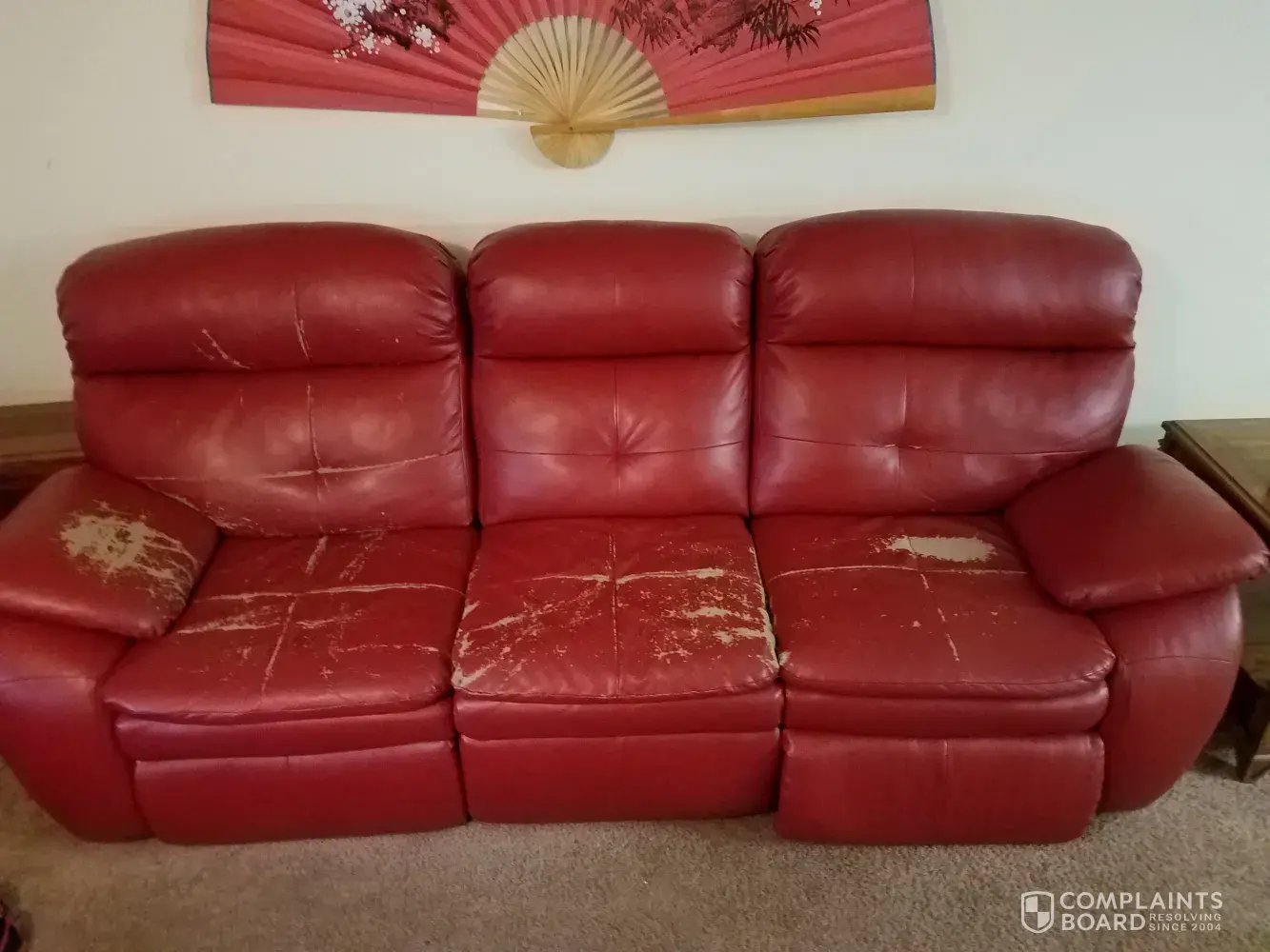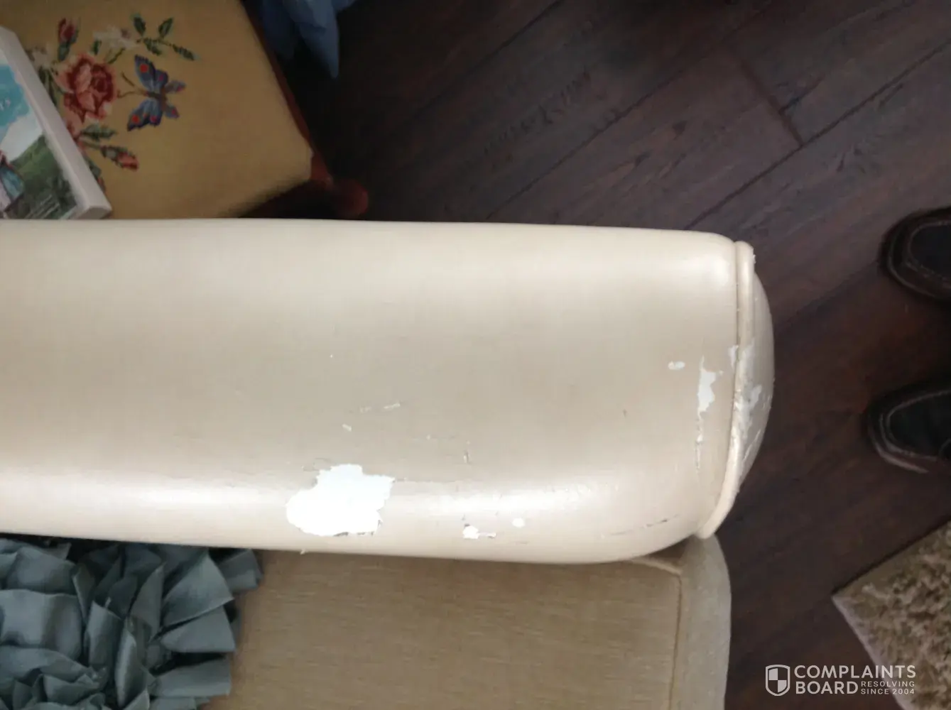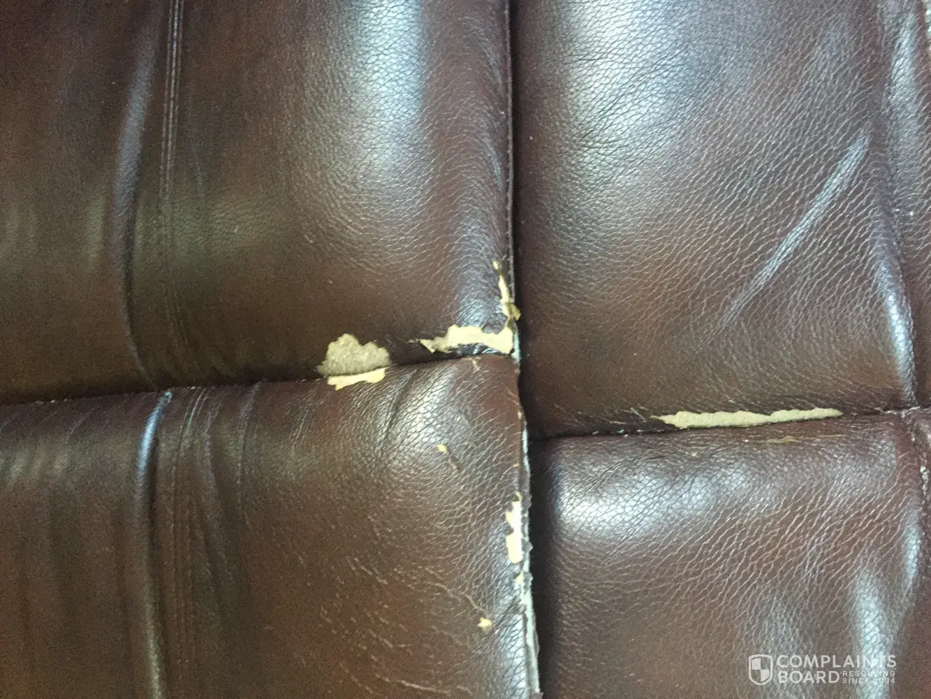 I purchased this bonded leather set about 21/2 years ago. The head rest on loveseat is peeling and flaking. The corners on console are worn out this set does not get much use. I went to where I purchased from myrtle beach sc and was told to send a picture of the damage. Attached is a few pictures. I would like this either repaired or replaced! Thank you Linda Rizzuti Burzo