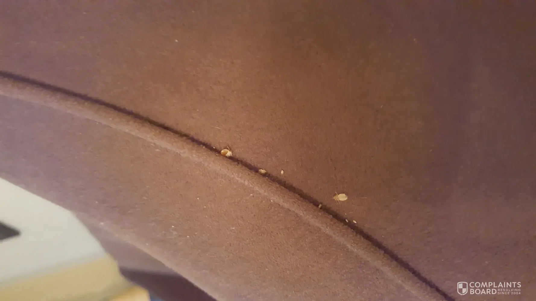 I purchased a new living room set from Rooms To Go in 2015. I noticed some dried looking debris attached to the outside of the furniture but really didn't think anything of it. Within a year, I started breaking out and feeling like something was biting me but I couldn't figure out what was going on. I have my home exterminated every 3 months, never saw anything. After several months of torment, I began wondering if it was bed bugs so I Googled bed bugs to see what they look like. Then 1 day, I finally saw something that resembled a pic so I threw my mattresses, the beding, pillows, mattress covers, EVERYTHING away, I thought all of it had somehow got infested. After sleeping in another room for several months, I finally purchased new mattresses, bed bug covers for them as well as bed bug covers for the pillows. I purchased new bedding and sheets as well. I was so excited to move back into my brand new beautiful room. Five days after getting my new bed, I saw a bed bug in the middle of my brand new comforter! I was devastated! I wanted to just grab my purse and move! Instead, I contacted my exterminator who came out and treated my bedroom, he confirmed I definitely had a bed bug problem just before I got rid of my old bed so when I saw this new bed bug on my new bed, I just lost it! I contacted my exterminator again who came out and exterminated my bedroom and whole house and yard again. While waiting on him, I began frantically looking at all my furniture. I decided to check under the sofa pillows only to discover the whole sofa set was infested! I literally saw them embedded in the Micofiber! They were hiding in the seams, some was alive, some was already dried up like what I had seen on the outside of the sofa! They were very hard to see because of the chocolate color of the sofa. As it turns out, while lounging on my sofa and then moving to my bed, I was transferring the bed bugs from the sofa to my bed which means there was nothing wrong with my mattresses at all, it was the soda all the time! So me and my grandson had been tortured for a while, being eaten alive!