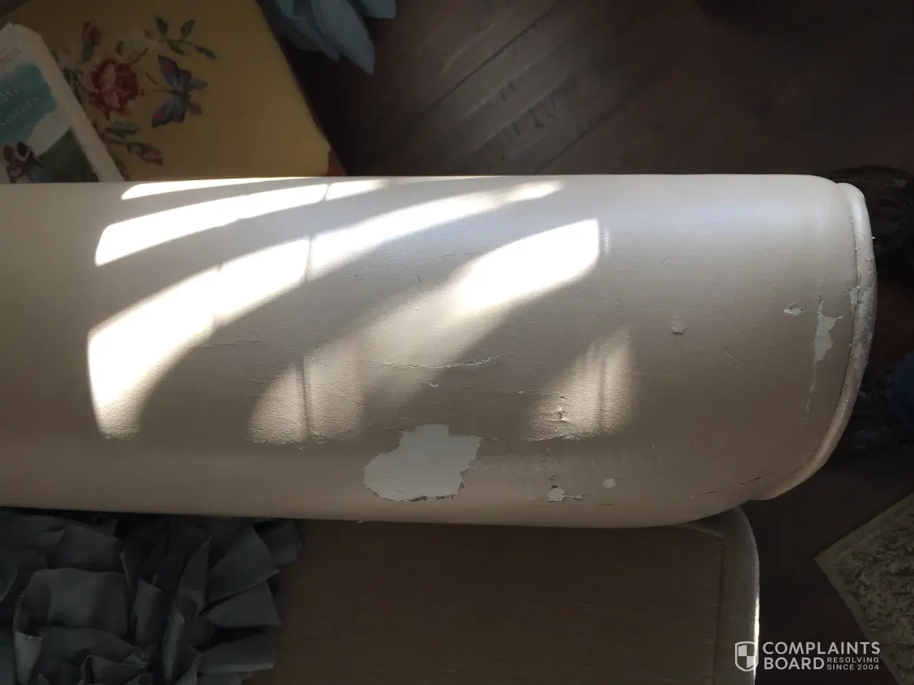 This furniture is HORRIBLE bought the off- white from rooms -to-go. Exactly year and 3 months (warranty is a year) it started developing yellow spots on the paint. On every piece we bought 5. Called rooms to goarms they would honor or even attempt to get in touch with manufacturer.