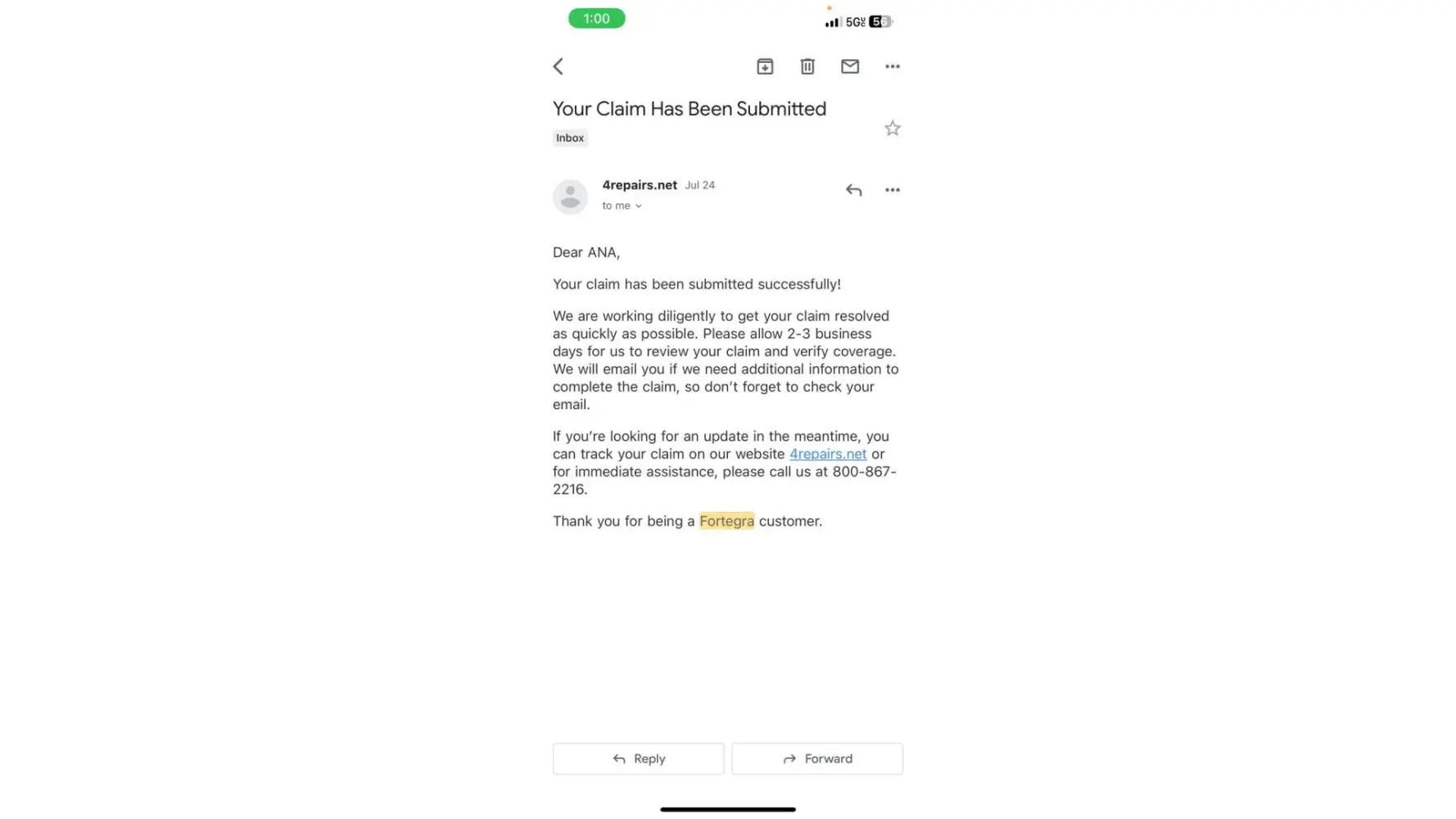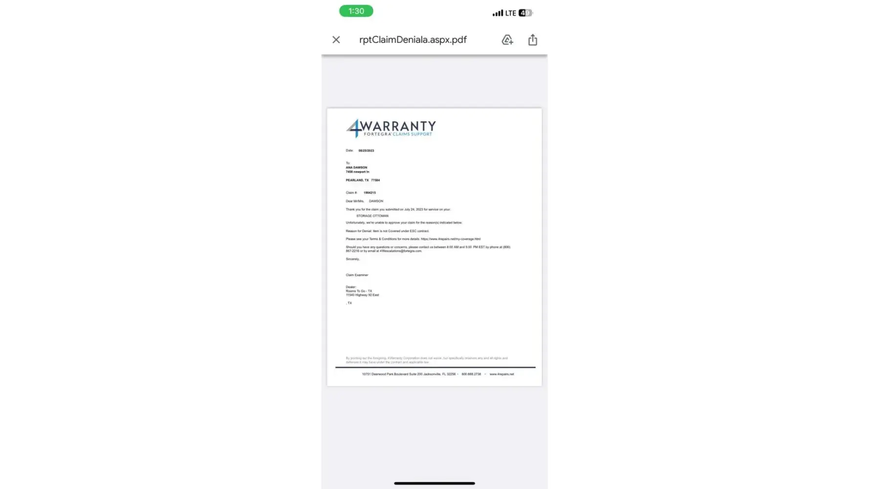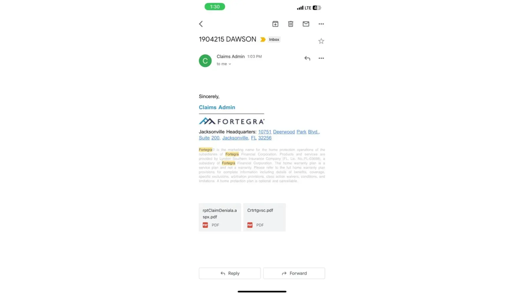 I did not get a denial letter until today after my call with Fortegra, they emailed it to me right after I got off the phone.