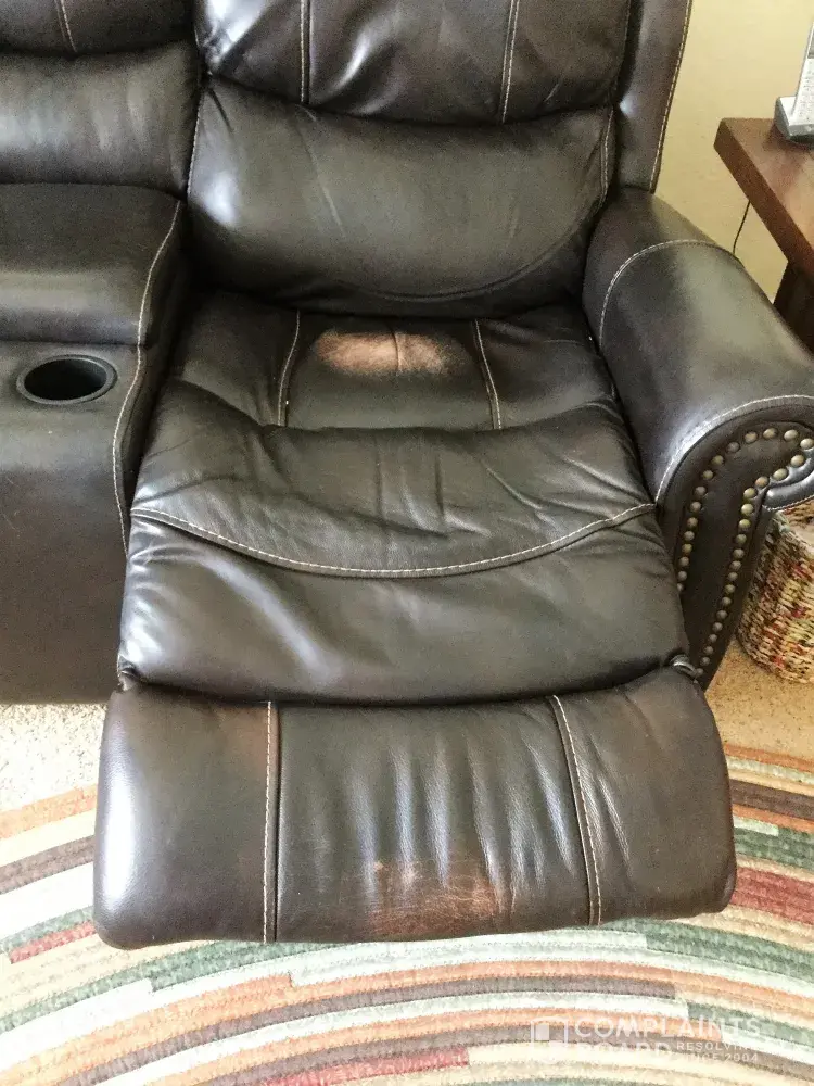 We purchased a leather sectional reclining sofa and spent $4, 000. Upon delivery, head rest had seam coming out so they replaced it. The same head rest after 8 months of use is pealing/discolored. The repairman said it should not happen and said we'd receive a new one. After no communication, we reached out to find that they denied the manufacturer warranty and said it was normal wear and tear. How can an 8 month old "leather" sofa have pealing/discoloration? The extended warranty does not cover this due to it being less than a year old. My husband spoke to the manager of the store and the manager stated that it could be hair products that caused this. Really? First of all, this is my husband's chair and he does not use products in his hair. We are finding that no one wants to assist. A leather sofa should not have these issues after 8 months of use. Customer service is not satisfactory.