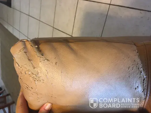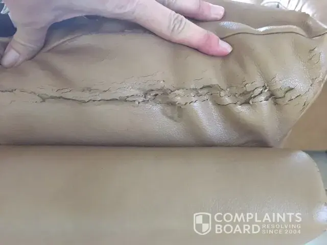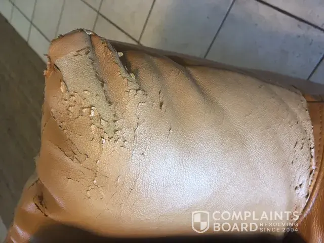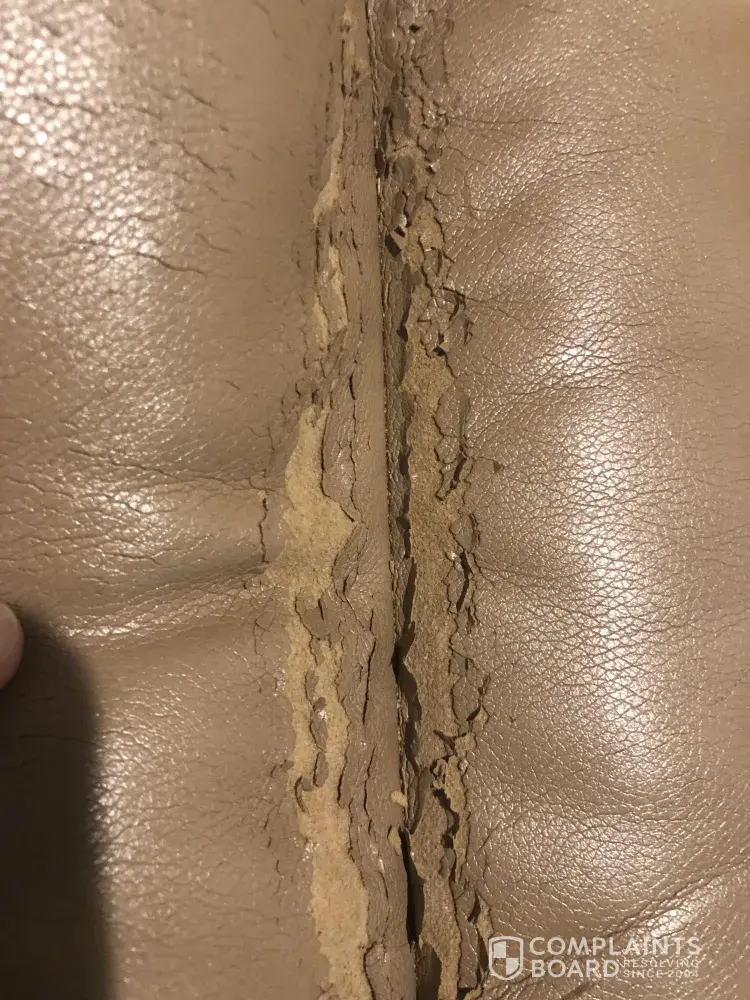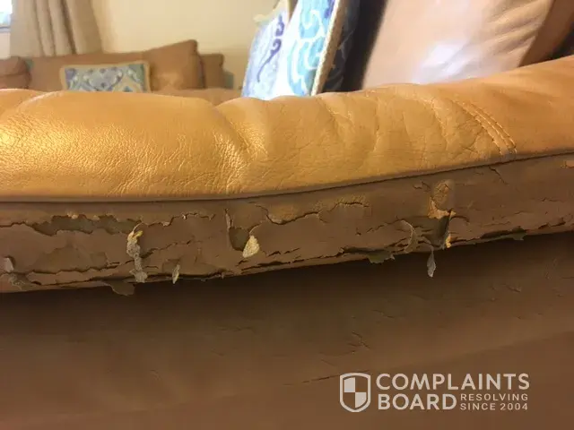 Yep the same thing happened to me. They sell it as leather but it is pleather. When I contacted them they immediately allowed me to do a reselect. I had paid off my account so a few weeks later, they closed my credit account. Baseless resasons. I think that it is time for a class action lawsuit against them.