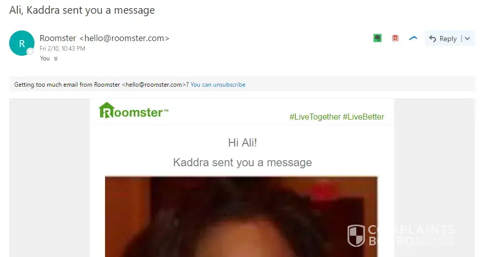 Roomster is the worst company I've ever dealt with. They just won't stop sending me hundreds of emails a day! I've gone to notifications and turned it off, I Unsubscribed, every notification. But no cigar! Still they keep on sending me emails. So I finally deleted my whole account and STILL THESE SUNSA ### KEEP ON EMAILING ME THOISANDS OF TIMES 24/7! I try and contact them. Just an automated very Mexican sounding voice telling me to log in to get 24/7 representative service. They won't let you contact a rep unless you log in, so then you have to resign up with Facebook in order to get to a page where there's no number, there's no live 24/7 rep Chat, No, there's only a section you can write a complaint and email it to god knows where... where emails go to die obviously! Because no one ever answers, they completely ignore the many emails you send telling hem to screw off already and just keeeeeep on keeping on emailing ya, over and over and over and over and over and over again!...(( -_-)) >_