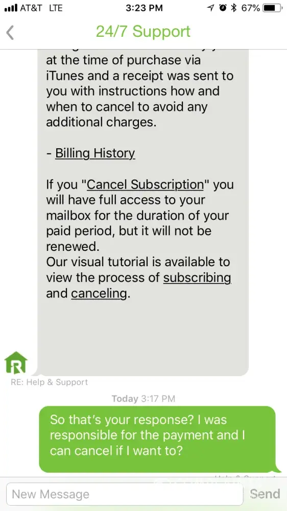 I cancelled my membership, but made the mistake ( after receiving an email from them that I had mail ) of logging in and signed up for a 3 day subscription at $5.95 in order to be able to read and answer my mail from so called potential renters. Never did hear from them !