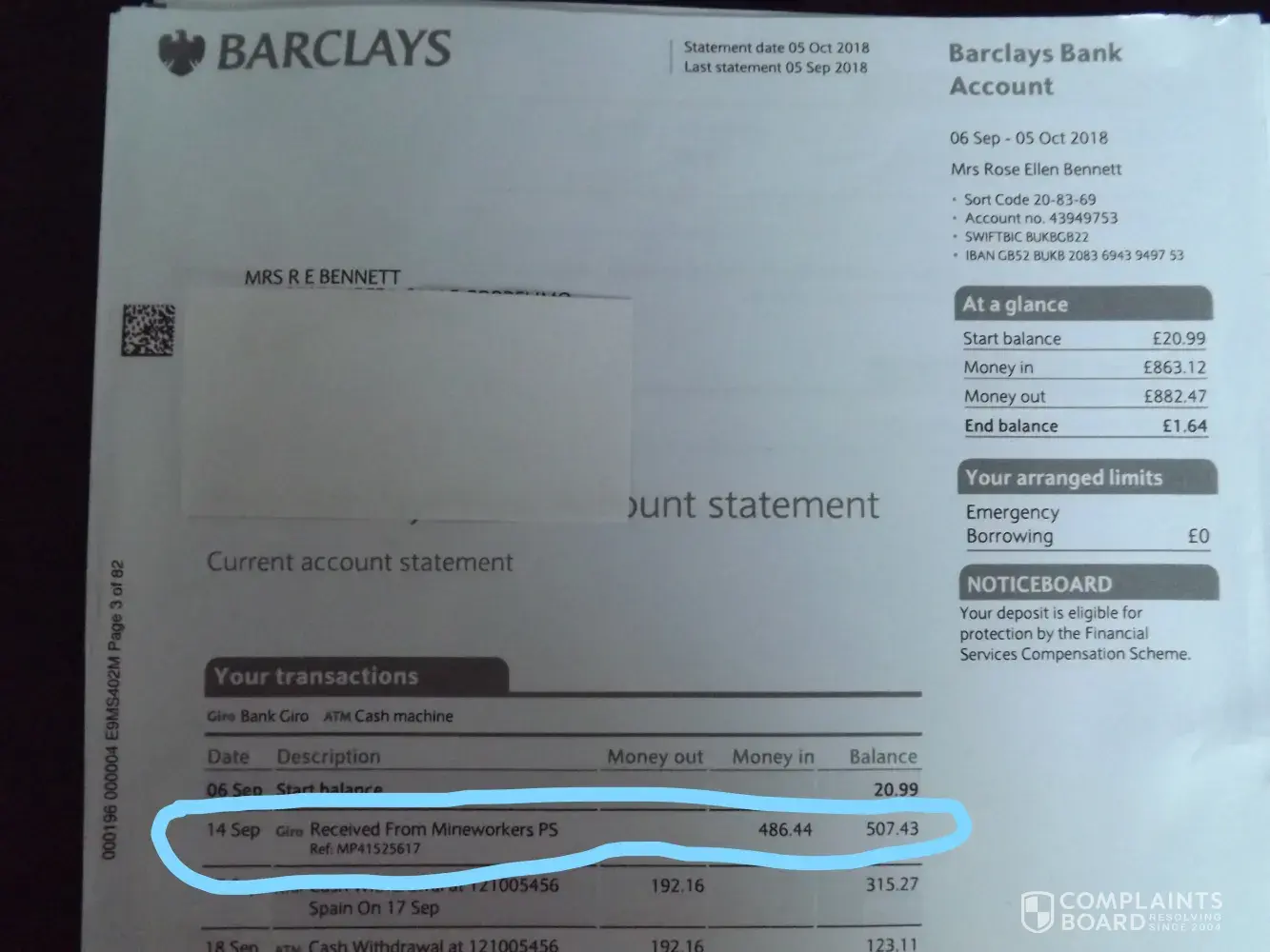 When I moved to Spain my Father moved here with me and my then wife, Rose Ellen Bennett aka Rose Ellen Forster, At that time my Father was in receipt of his state pension and a pension from the mineworkers pension scheme. Rose Ellen convinced my father that having these pensions paid into her bank account in the uk would make things 'simpler'. In July of 2016 my Father was no longer eligible to claim the mineworkers pension, and although Rose Ellen assured me {and showed me an email} that she had cancelled this pension, I have now discovered that she carried on claiming it. This carried on until approx march of 2019 when Barclays forcibly closed her bank account in the uk after a property fraud investigation . this came to light as Barclays {as part of banking procedure} sent a copy of every transaction carried out in the account up to the point it was closed {i recently found these documents hidden in my house} In the photographs you can see payments from aug 2016 and march 2019, and payments of 470 pounds were made every month in between these dates, a rough estimate on this fraud alone is approx 10, 000+ pounds