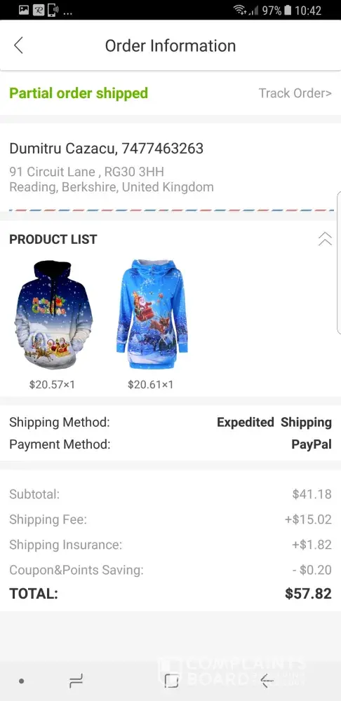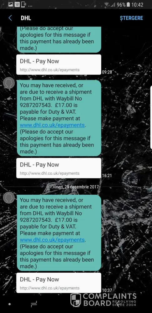 I order two clothes pieces for Christmas on 5 Dec 2017, I was pay for extra delivery 15.02 $ to recive it in 3-5 working days and 1.82 $ for insurance and now (on 29 dec 2017) the DHL put my order on hold cause they expect me to pay them 17 £ for Duty and VAT. I'm sorry to tell you that I don't need any more the clothes cause first - the Christmas is over and second - I was not agree to pay 17 £ extra for DHL delivery. I already pay for extra delivery. Please contact them and get your clothes back and give my money back as you fail to respect our agreement. Thank you. DUMITRU CAZACU