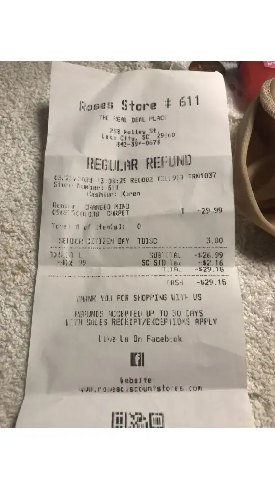 On Dec 23, 2022, I bought a pair of pants at Roses in Covington Georgia. I didn’t notice that where they place the tags, the waistband had ripped. When I noticed the rip I tried to take them back to swap out (Dec 30). The tags are still on the pants and they have never been worn or washed. The manager said she could not take them back because she was sure they weren’t ripped when I bought them. I took the pants back and told her I would donate them. Roses just lost around 500.00 dollar per month customer. I buy all my sheets and hold products from this store as well as other things. Keep you shedded clothing and I will go spend my money elsewhere. This store is an utter disgrace to the community in my humble opinion. It’s always nasty and the prices ring up different from what the price tag says.