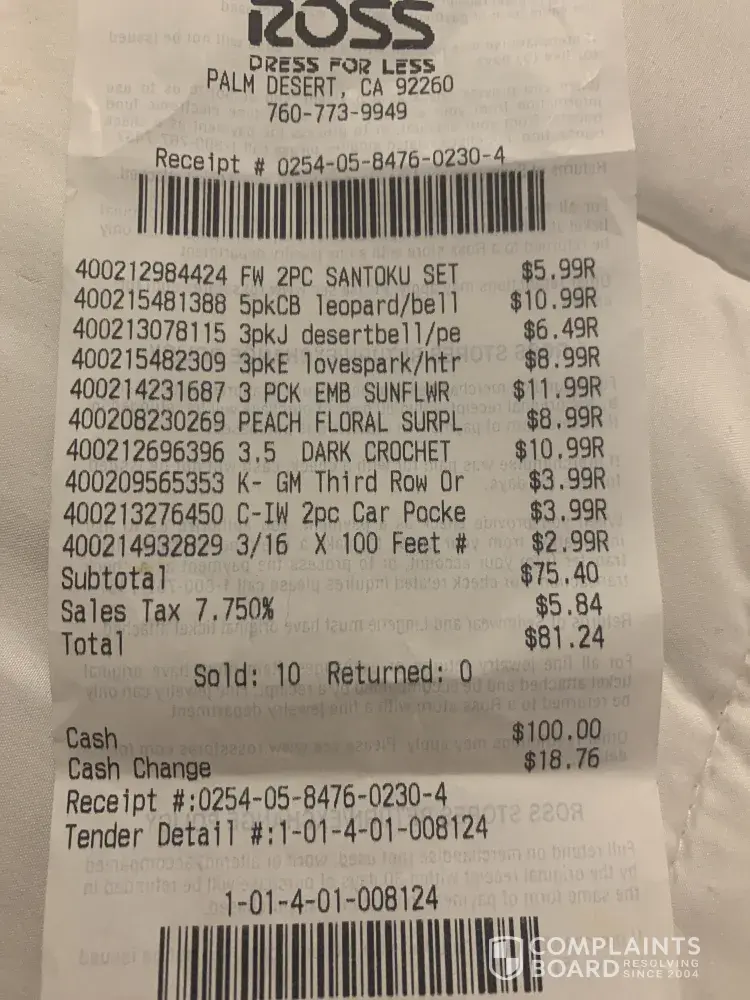 Today at 2:22pm on 08/17/2020 I went to ross store # 0254 and I made a purchase of maternity shorts and I realized that inside the pocket on the right side of the store there was 8 pins inside.. And im really upset because my baby got hurt. Can you please give me a refued