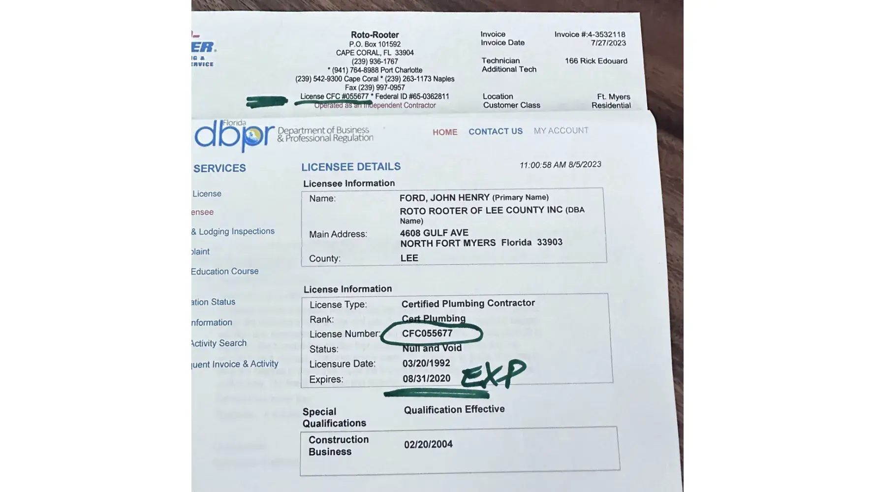 Roto-Rooter of Lee Co charged me $ 2,200 to find the clean-out and to raise the clean-out and to repair a broken PVC sewer pipe in the yard. The technician dug multiple holes in the lawn, 2 right in front of the fence gate, where my irrigation pipe is running. During this process he damaged my irrigation pipe, but didn't mention a word about the irrigation pipe he damaged. He just covered it up with soil and grass and when I run the irrigation a week later a sink hole opened up right in front of my fence gate. When I came home from a walk with my dog, I stepped into the hole - very negligent from the technician. I requested the repair in writing via email and verbally. I didn't got a response from this irresponsible and negligent 24/7 available plumbing company. Unfortunately until they repair the irrigation, I can't water my lawn or landscaping. When I called I talked to Brian, one of the owners. He said the manager will call you back. When I ask Brian who the owner of the company is, he told me that he can't give out any company information. Meanwhile I figured it out that the company belongs to 3 family member, one of them is Brian. When I asked him for their Lic number he said he doesn't has the lic number he has to look it up or I can do it myself online. I responded that I did and the License number on the invoice expired 3 years ago. He got very angry with me and told me not to call this business ever again and hang up on me. Unfortunately this 24/7 hours business is not responding at all to the damage done to my property and the repairs. Meanwhile I found the new company information, the new license number and the 3 family owners Debra, Brian and Christopher and filed a license complain against them yesterday, apparently they or not only reckless with their customers property, they are rude and misleading the general public in regards to the contractor lic law. I found their new license under Christopher Ford. Not really sure why a honest business is trying to hide their company information and particular their license information as this is the law to provide License and Insurance to their customers. Please do me a favor don't pretend you didn't service my property in Naples as you like to do when people give you one star only.
