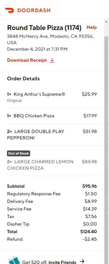 I would not have written this and complained about this if There was some type of communication and correct information given out to the customers so the service here and the outcome of this is still poor I never imagine me ever having this many problems with round table as much as this one so I am and all I got was that I’m sorry that’s just not right and horrible and if they are short on drivers and maybe they should hire people