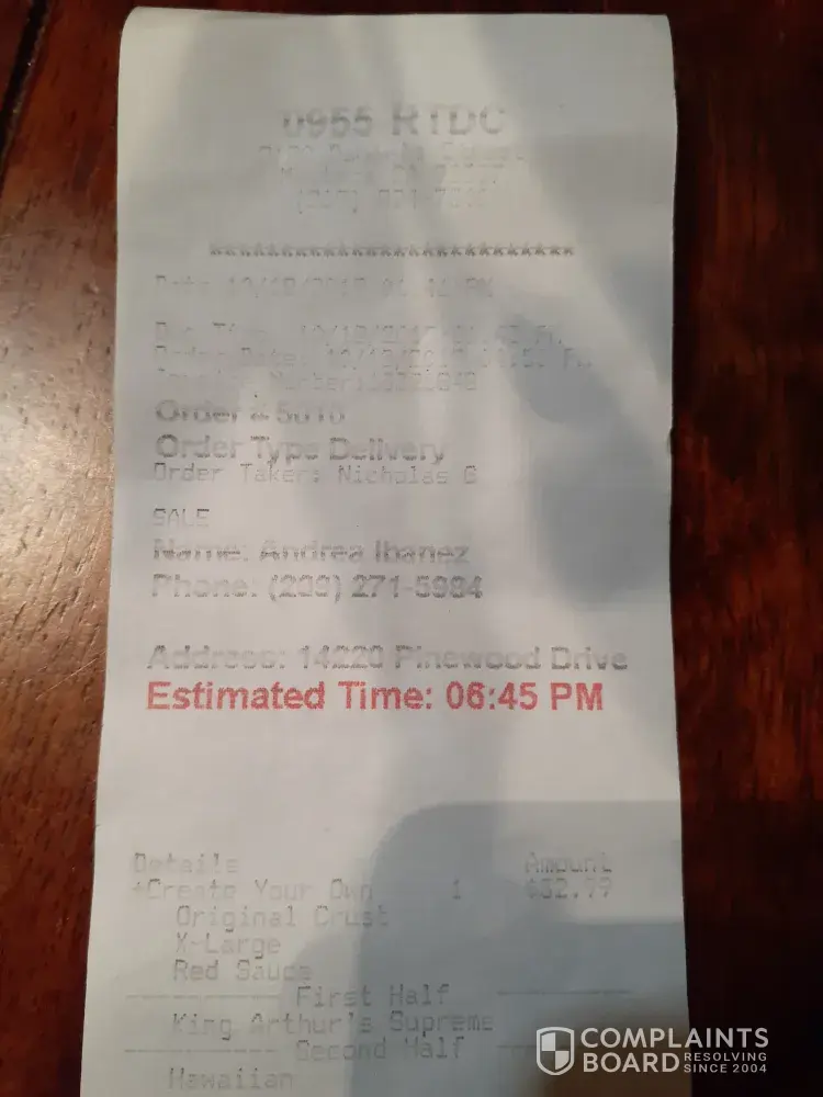 Read full complaintpizza