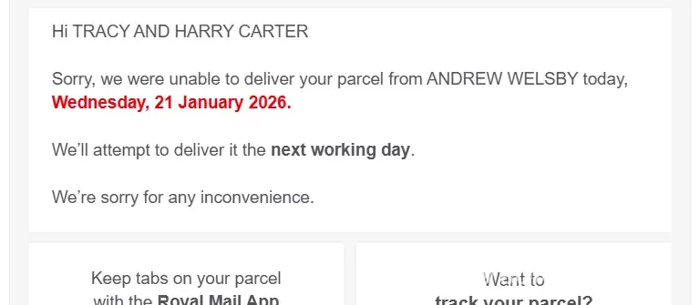 Well Ryal Mail not fit for purpose once moreWaiting for a tracked 48 delivery which was at their hub on saturday at 1pm and according to my local office it still is even though I've had a message saying delivery between 10 and 12 on monday the 8th Dec well the 9th camme and went so today went to the local parcel office explained to a very helpful and...