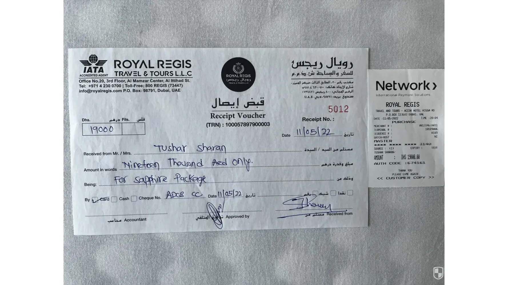 I would like to register a fraudulent/cheating complaint for a Company called – Royal Regis Travel and Tours LLC for enrolling me for Family membership while taking a full amount of AED:11,400+2000 Air Travel benefits.