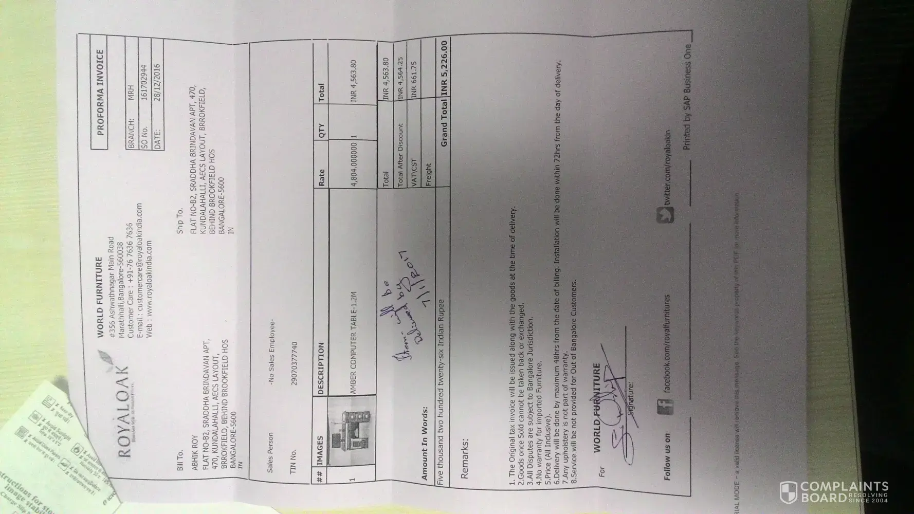 Royaloak Furniture Goods not delivered - fake statements