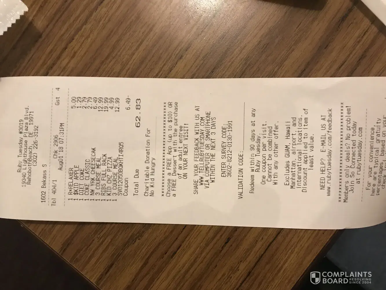 Ruby Tuesday Complaints Page 6 of 27