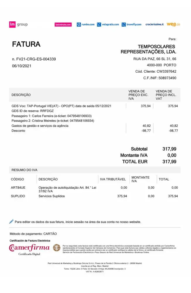 We bought 2 tickets from Porto to Vienna using Rumbo.