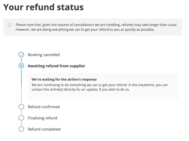 After that, we received an email telling us to select the refund method (we had already said that we wanted it by bank transfer).