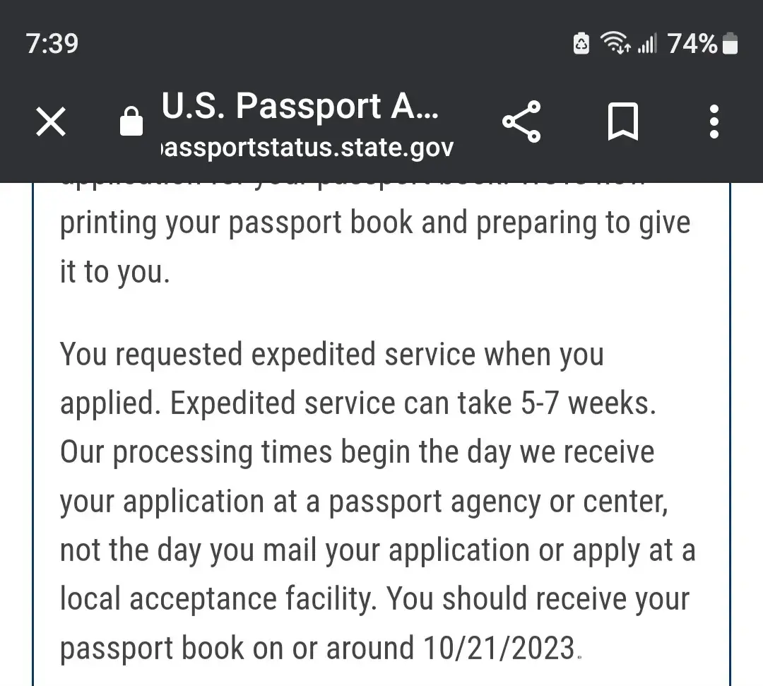 My status updates were not accurate and were telling me things that were simply not true. For example, it said that my passport had been delivered, when in fact it had not. I tried to talk to someone about this, but it was a struggle to even get through to a real person. When I finally did, no one could tell me where my passport was or why it would say it had been delivered when it had not.