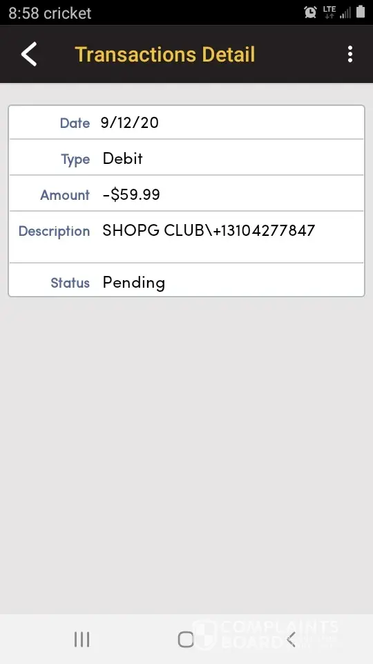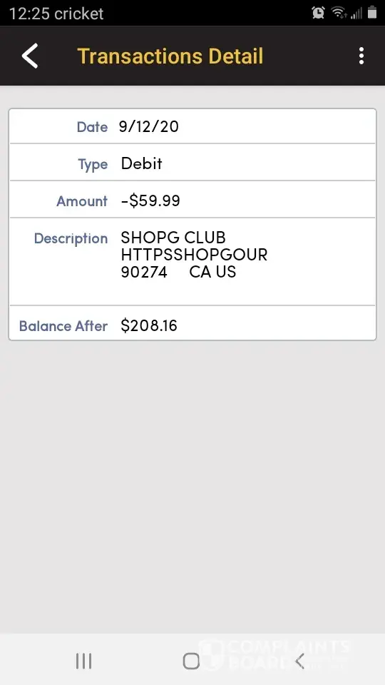 On Sept 12 I was charged $59.99 from an unknown company and the description said SHOPG CLUB+[protected] and I am not able to get in touch with this merchant to dispute this unknown charge. On sept13 the description of the charge changed and now says SHOPG CLUB HTTPSSHOPGOUR 90274 CA US . I can not find any information online to contact whomever this merchant is and I need my $59.99 returned to my account.