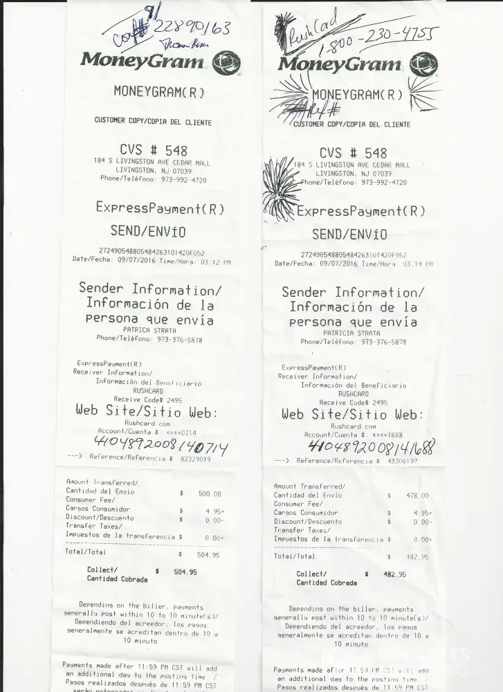 I attached a copy of the transaction through moneygram going into the rushcard account.