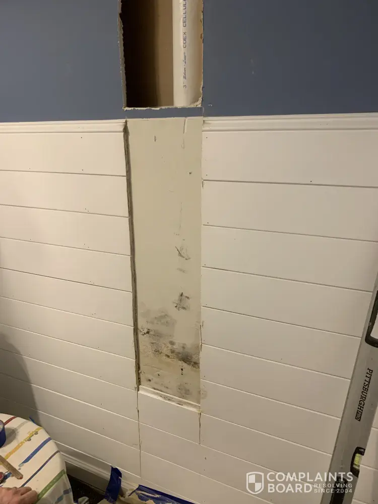 Good morning, My name is Rich Decker and I live in Magness Mill neighborhood (Bel Air, MD). We moved into our new house back in December 2015. A few months ago we had shiplap installed in our downstairs powder room. Fast forward to about 3 weeks ago we noticed a leak in our basement. A plumber came out yesterday 12/21/2020 and determined the leak was coming from a pipe (possibly related to the shiplap). However, upon removing the shiplap and drywall it was determined when the toilet paper was initially mounted (by Ryan Homes) the installer drilled into the plumbing. When the company removed the toilet paper holder to hang the ship lap is when they inadvertently pulled the nail out of the pipe and began the leak problem. Attached are pictures of the holes in the pipe. You can see the holes of where Ryan Homes initially installed the toilet paper and the circular outline of where the company reinstalled the toilet paper holder. We have pictures, the actual pipe and drywall with mold on it if needed. Thank you, Rich Decker