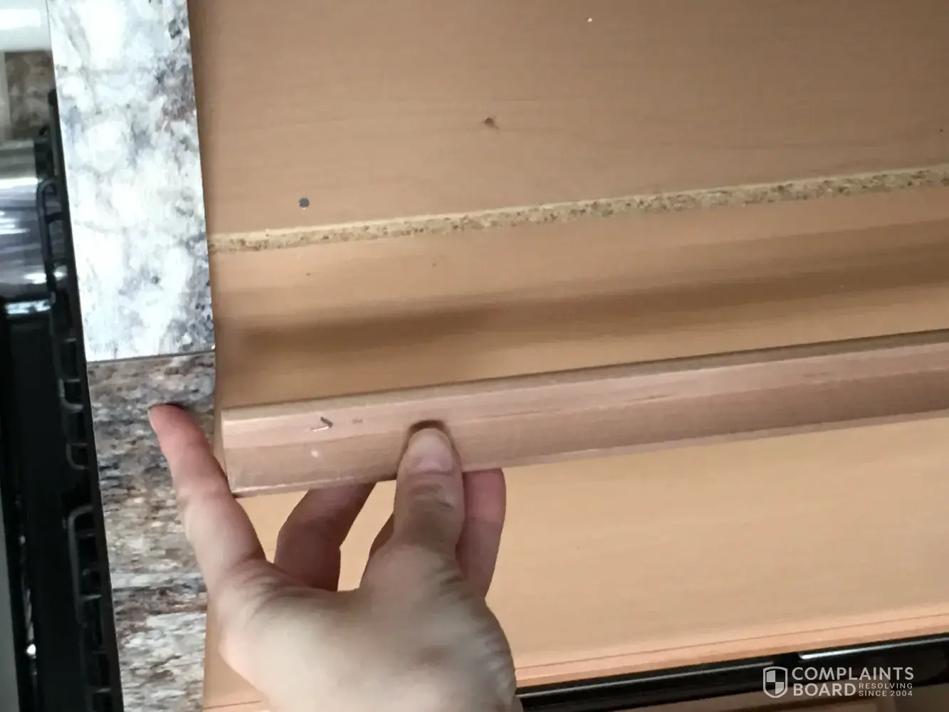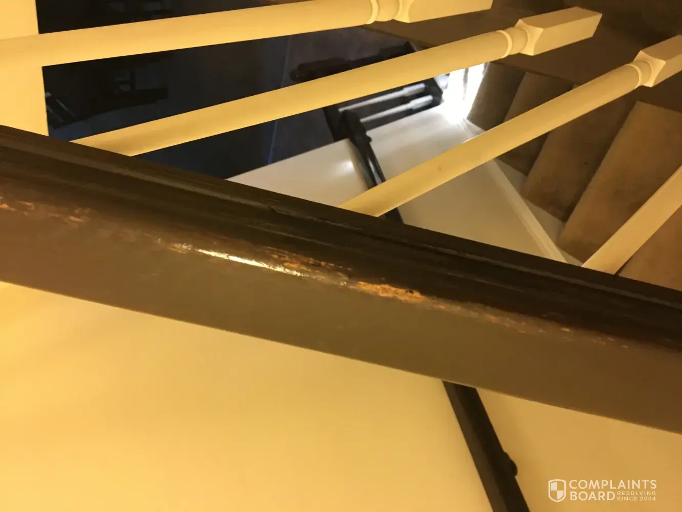 Our new house - no knobs on tthe cabinets when we moved in. Â No credit for not putting knobs on. Â Hardwood floors are the worst I have seen. Â The stain on the stairs is not even close to the stain on the floor (already had two people comment on this). Â Was not told that a pull down set of steps was not included (how ridiculous). Â There were not even lights in most of the rooms. Â My carpet is so uncomfortable. Â Long punch list of loose fixtures, trim not painted, hardwood, cabinets, nails, wrong drain pan, goes on and on.