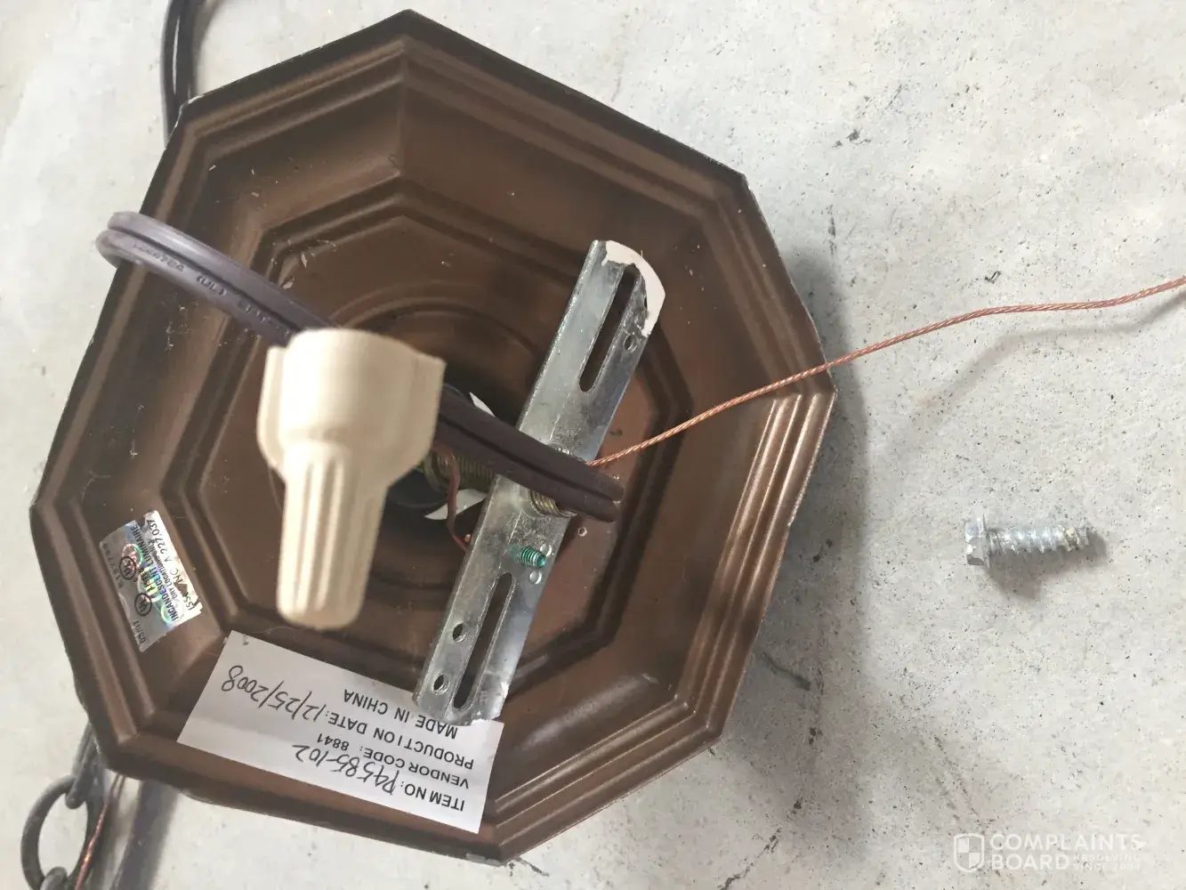 We own a Ryan home which was built in 2009. On Monday, 7/17/17, I arrived home with my sons from a vacation around 1200 pm to find that one of our chandeliers had fallen two stories onto our hardwood floor. I had a contractor come to let me know what happened and he noticed that the chandelier was held up by two very small inadequate screws that maybe measure 1". This chandelier should have been held up by much longer screws. I contacted Ryan homes on 7/19/17 around 1100 am and spoke with a lady who wasn't concerned at all. We have two other huge chandeliers which we are very concerned about that might also fall. The first time, we were very fortunate that no one was home, except the dogs and they didn't get hit. Who knows what might happen if another one falls. The lady I spoke with told me that they couldn't do anything about it since the warranty expired after one year. She also said that who's to say that the previous owner (who happens to be a lady in her 60s) didn't mess with that chandelier causing it to fall. I feel that it was negligence of your company to use the wrong screws and putting my family in harms way. I want this to be a formal complaint so that when this happens again (and it will d/t your short cuts) there is documentation of your knowledge to this issue and your lack of interest/concern and desire to make it right. I will be posting something in our neighborhood site to ensure everyone knows of your shoddy work so that if it happens to them, they know you were made aware of this issue and did nothing to correct it.