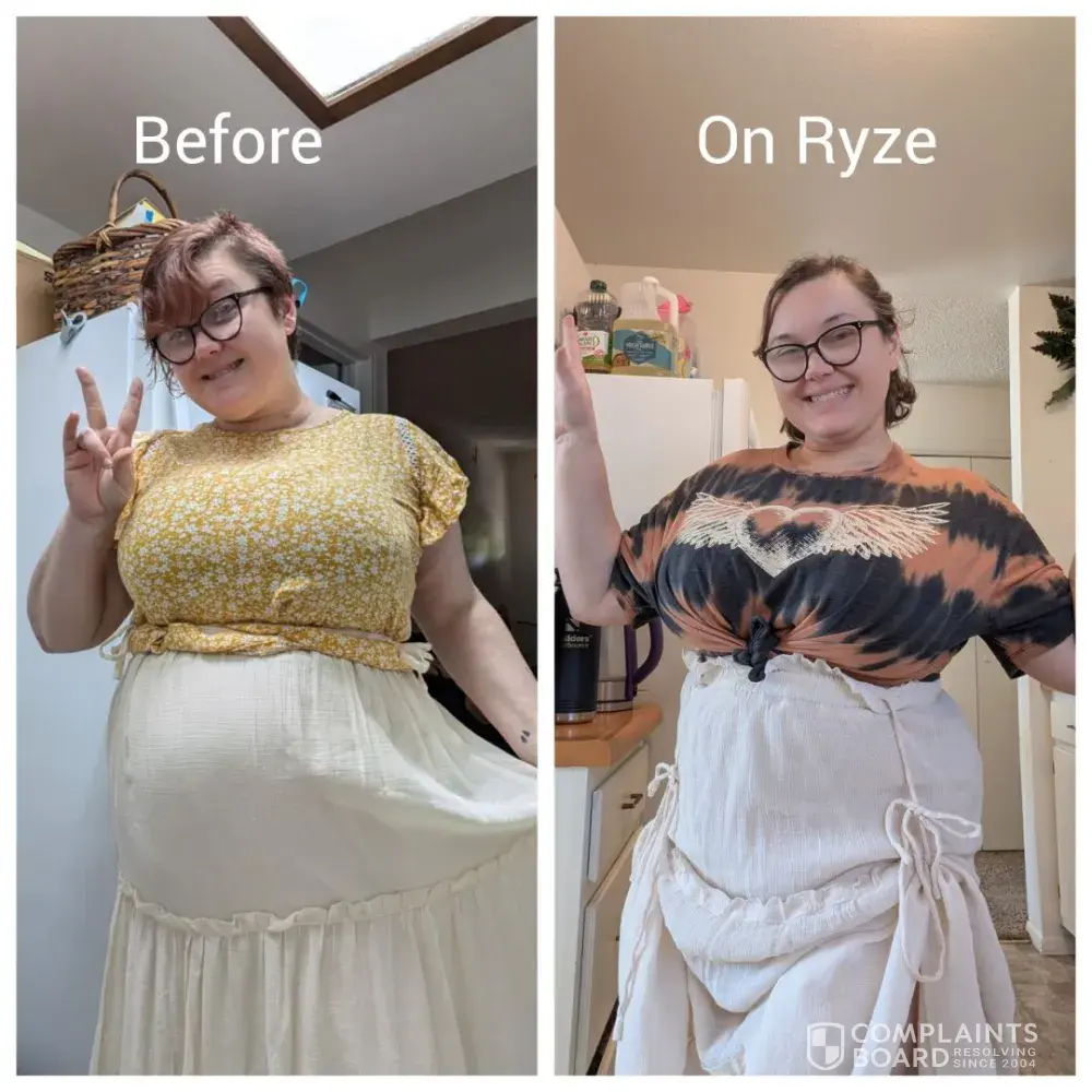 Recommendation: If anyone is struggling with bloating then please give Ryze a try, it took me awhile to get my bloating down. Eat healthy food and drink lots of water too!!