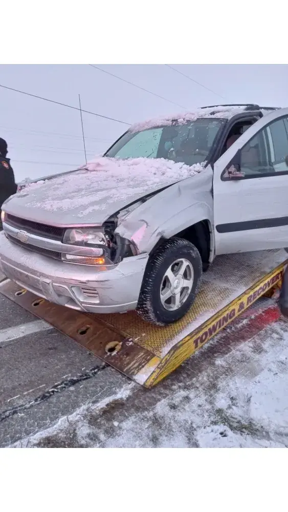 I was very confused I didn’t think deer hit me I was correct not for but Buck he ran thru windshield. I still have issues with back and neck. Glass busted in windshield tire on passenger side both front bumpers husband bolted on. Radiator pushed forward engine and other light on. Air works at times. Some scratches there but passenger door won’t completely open. Oil leaks now. Mess. Other things I can’t think now. Needs looked at. My head had two small cuts breath knocked out of me. Car smokes. Luv