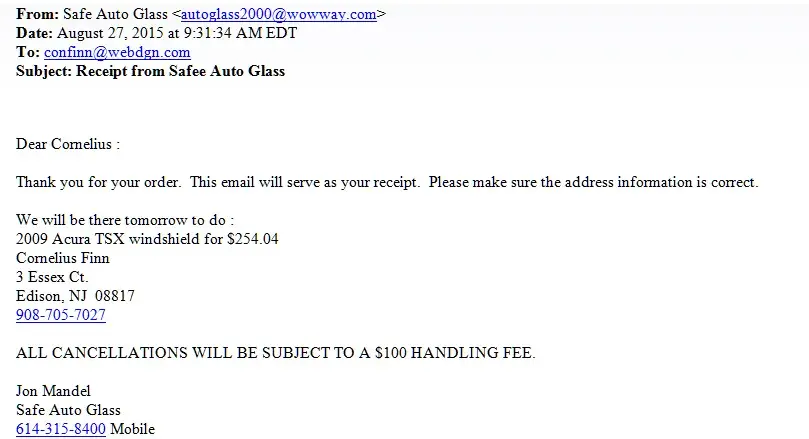On August 27th 2015 I paid Safe Auto Glass $254.04 to repair the windshield on my 2009 Acura TSX windshield. I guess they subcontract the work out to others so a repair man came to my house and replaced the windshield shortly after that. Towards the end of September we had a big rain and the windshield leaked. I called the repairman - His name was Gilbert at [protected] . He said he would come right away to fix the windshield. It took months for him to show up. I called him, texted him and left voicemails - nothing. Finally he showed up and gave an excuse that someone was sick in his family outside the US and that was why he didn't answer my calls. He 'said' he fixed the windshield again. Now, here it is February and the windshield is still leaking . I called Gilbert 2 weeks ago and he said he would come and fix the windshield. As of this date - no Gilbert. He wont answer his phone or emails. When I called the Safe Auto Glass main office and talked to Jon Mandel he was very arrogant. He said he would take care of it but that's what he always says. He actually hung up on me.
