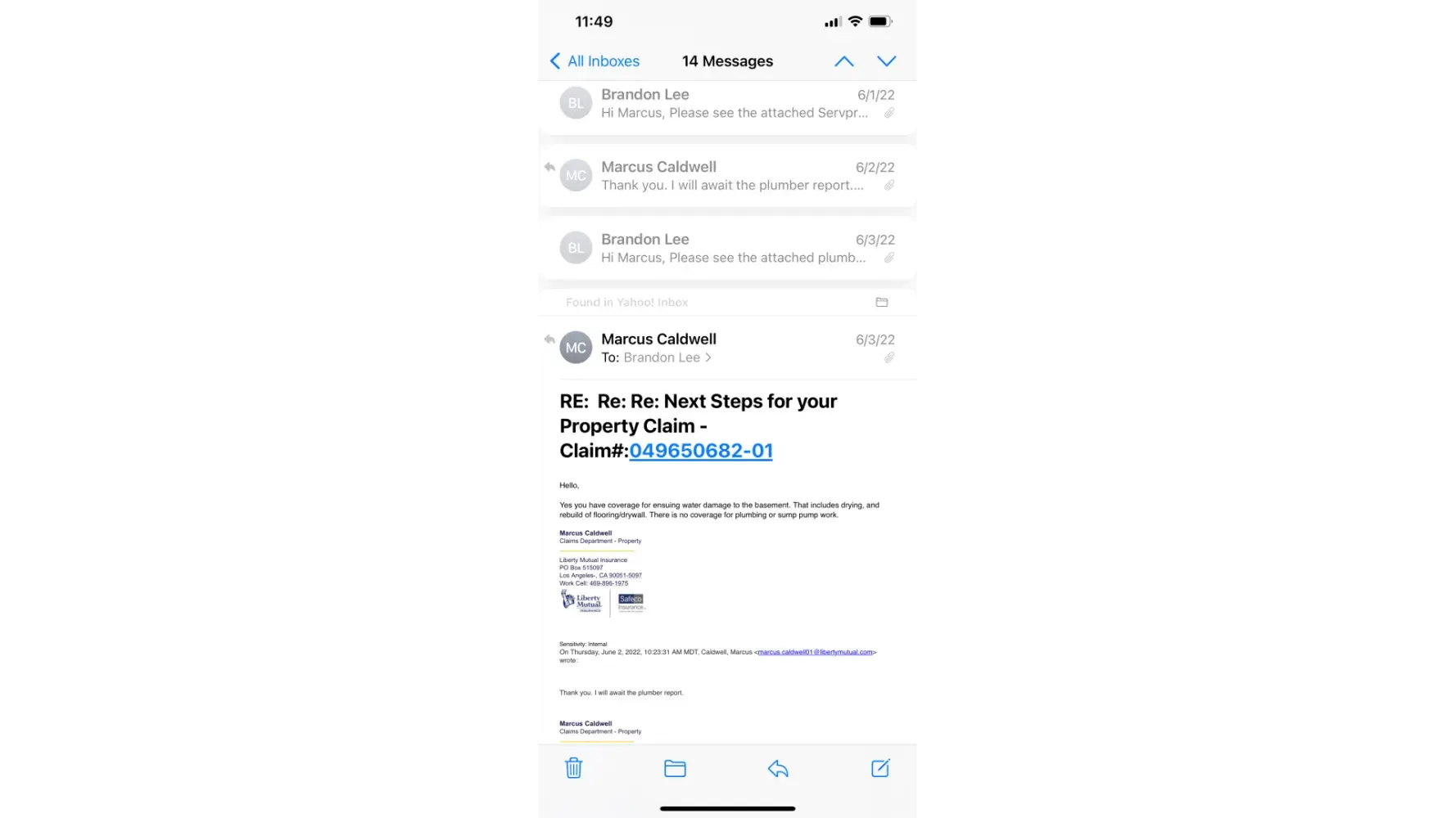 When I call SafeCo and choose the option for Claims and enter in the claim number I am directed to Alexandra Fisher at [protected]. I have left multiple messages but have not received a return phone call. The phone system is not user friendly so I am having trouble talking to a live person.
