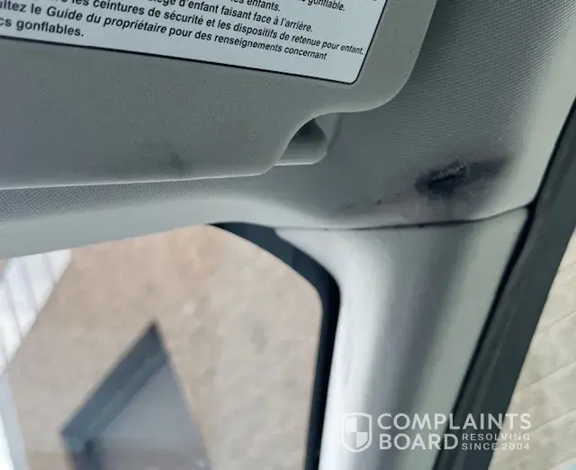 Read full complaintBlack adhesive left on headliner on June 25th — Complaint 25865656