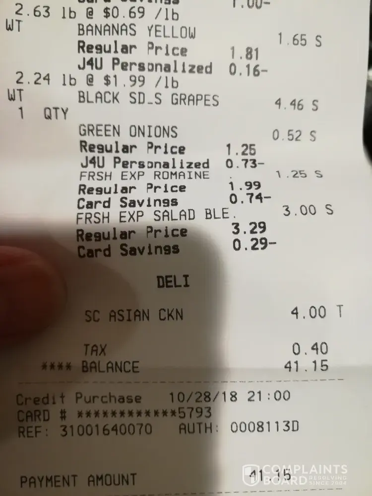 I was at the customer service desk to return 1 tray of chicken wings and a bunch of bananas that I purchased from that store (#1445) a few hours earlier. I found a cheaper price for the items elsewhere and purchased them there.