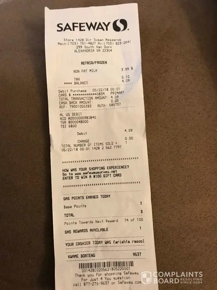 Wait to go safeway here is another unhappy customer who is saying bye to buy or put gad on any safeway.